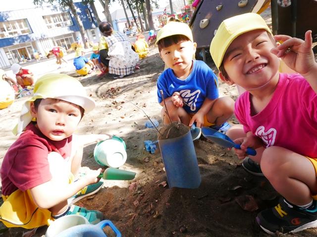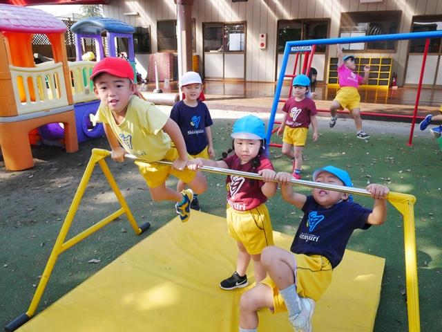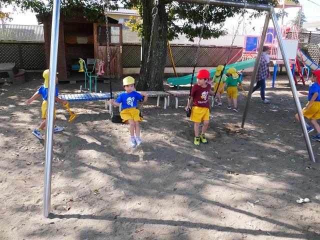 幼稚園のお友達は、みんな元気いっぱい外遊びを楽しみました。