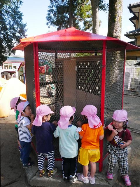 10/11(月) 園庭遊具・うさぎ小屋の屋根の塗装が綺麗になりました☆