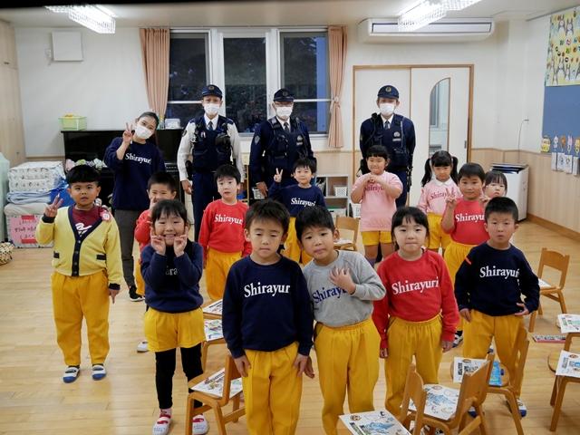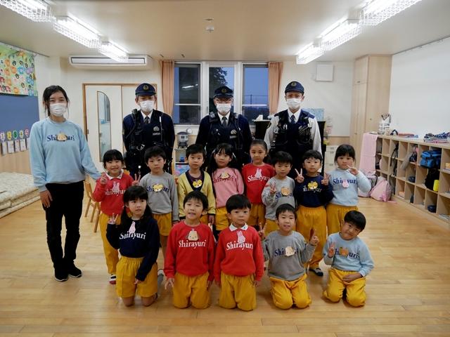 お泊まり会にあたり、みんなが安心して宿泊できるように、警察の方もいつもより念入りにパトロールをしてくださいました。警察の方のお話を聞いたり、一緒に記念写真を撮ったり、貴重な機会でしたね。