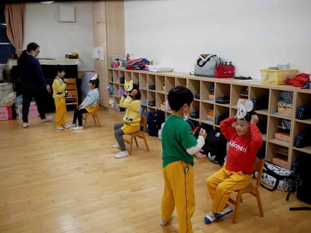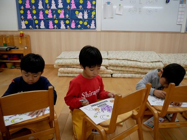 この日は、午前中は、お家で過ごし、15時30分に幼稚園に集合しました。