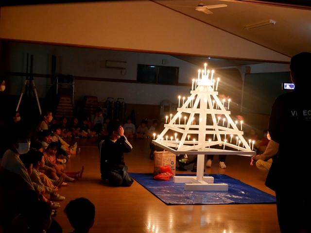 真っ暗な中でのろうそくの光は、とっても綺麗ですね。