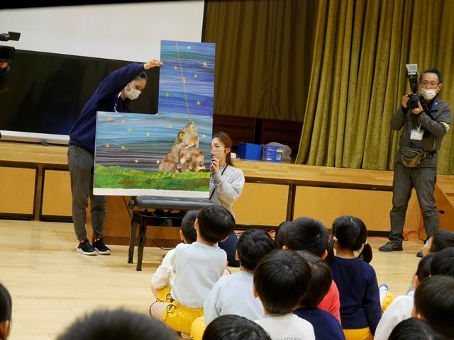 大型紙芝居を読んだり、スクリーンで花火も見ました。