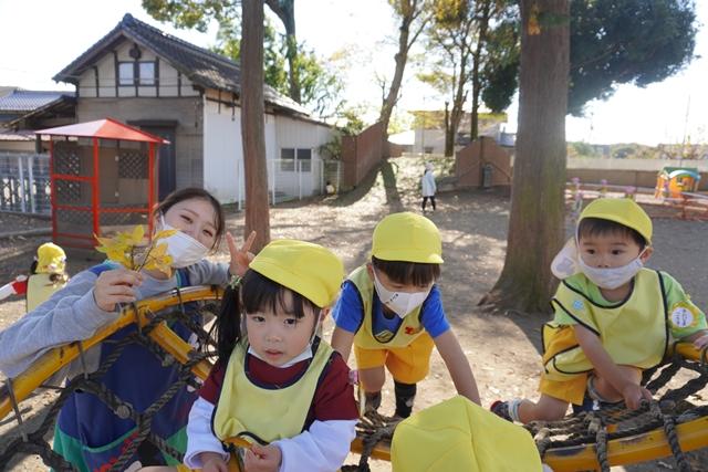 どんぐりや落ち葉拾いをしながら、秋を満喫しているお友だち。