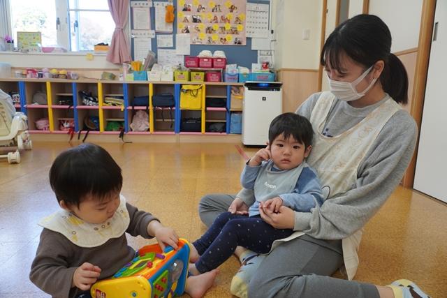 ひよこB組さんは、お気に入りのおもちゃで先生やお友だちと仲良く遊んでいます♪