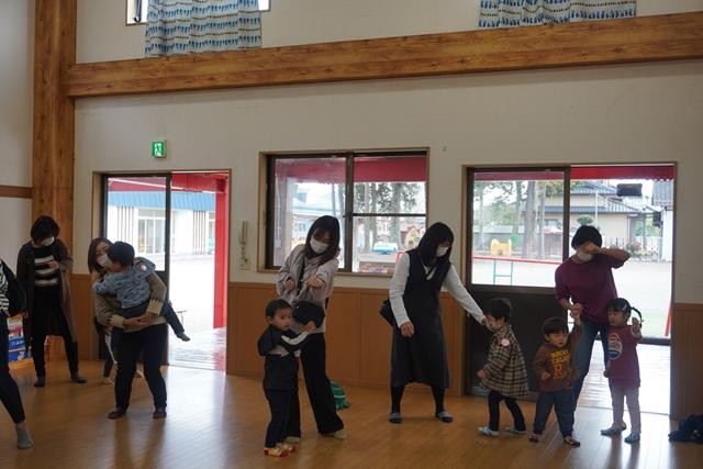 いつものように、手遊びや紙芝居・アンパンマン体操をしてから大根抜きに出発です!