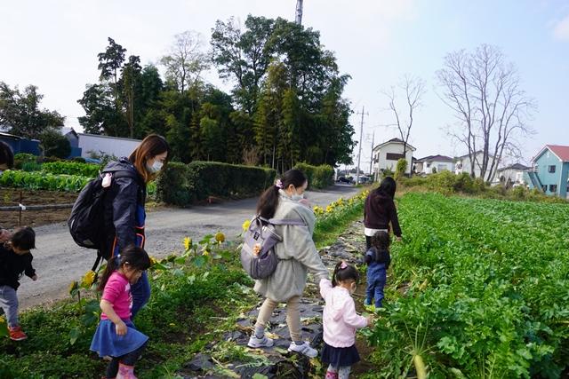 お家の方と手を繋いで、いよいよ畑に出発!!