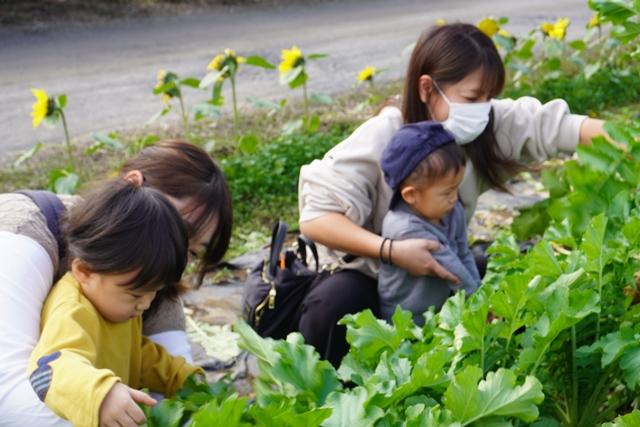 「どれにしようかなぁ~♪」お家の方と相談して、抜く大根を決めたら、