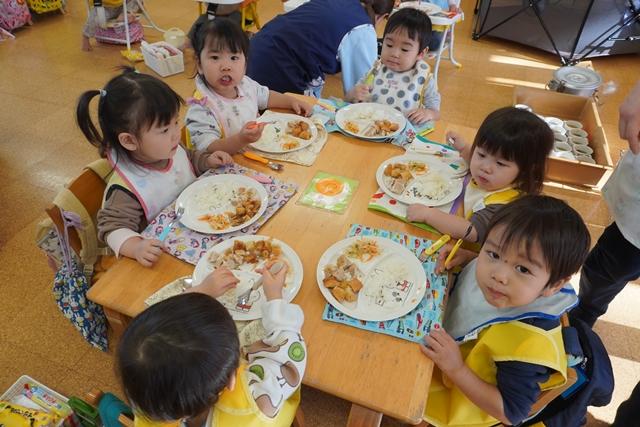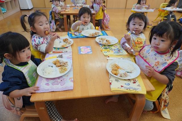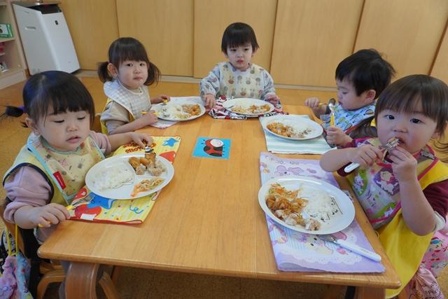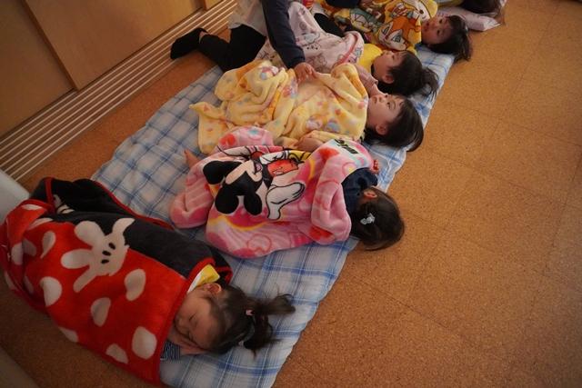 楽しく遊んだあとは、大好きな給食を食べて、仲良くお昼寝です。