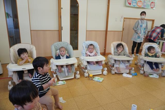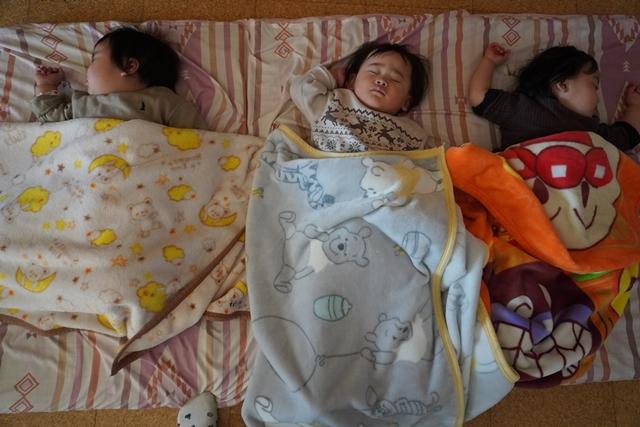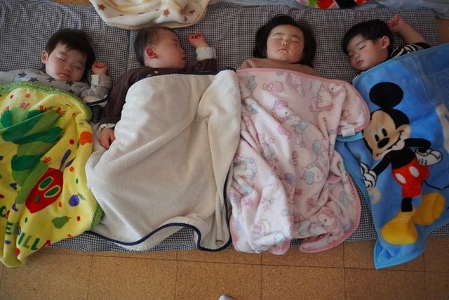 美味しい給食をもりもり食べて、なかよくお昼寝です。