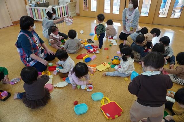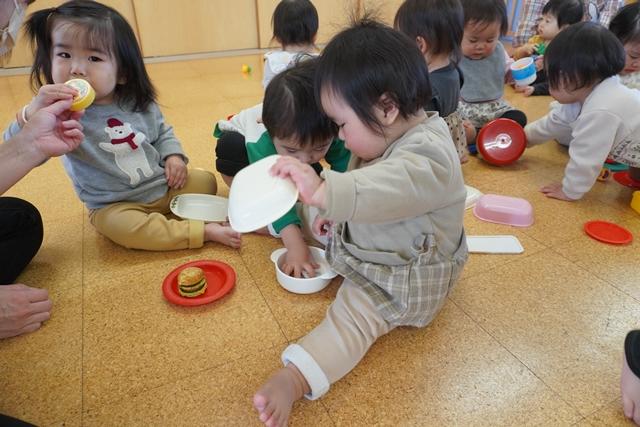午前中の自由遊びでは、おままごとをして遊びました♪