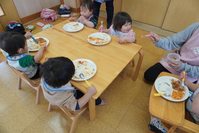 たくさん遊んだあとは、みんな大好き給食の時間。