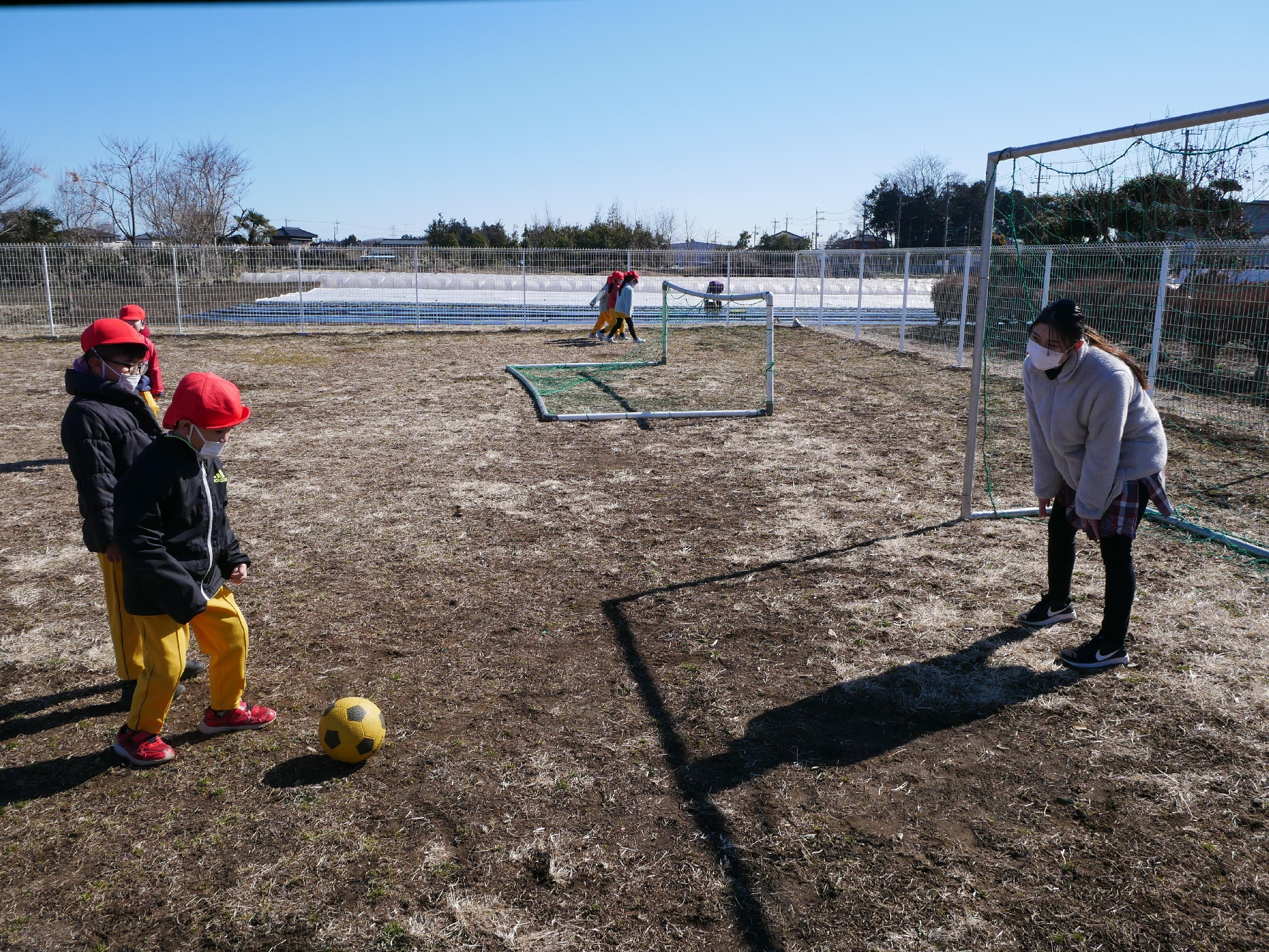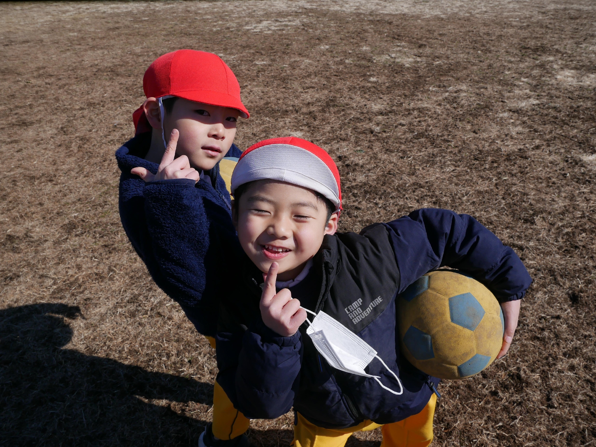 午前中は原っぱ広場でボールやサッカー、三輪車、なわとびなど、それぞれ元気にあそびました(^o^)