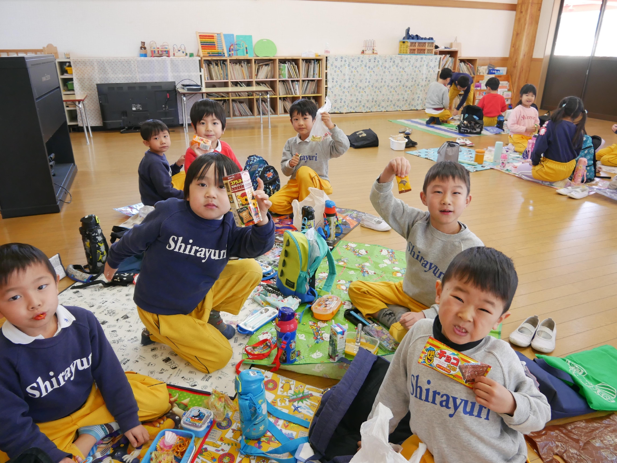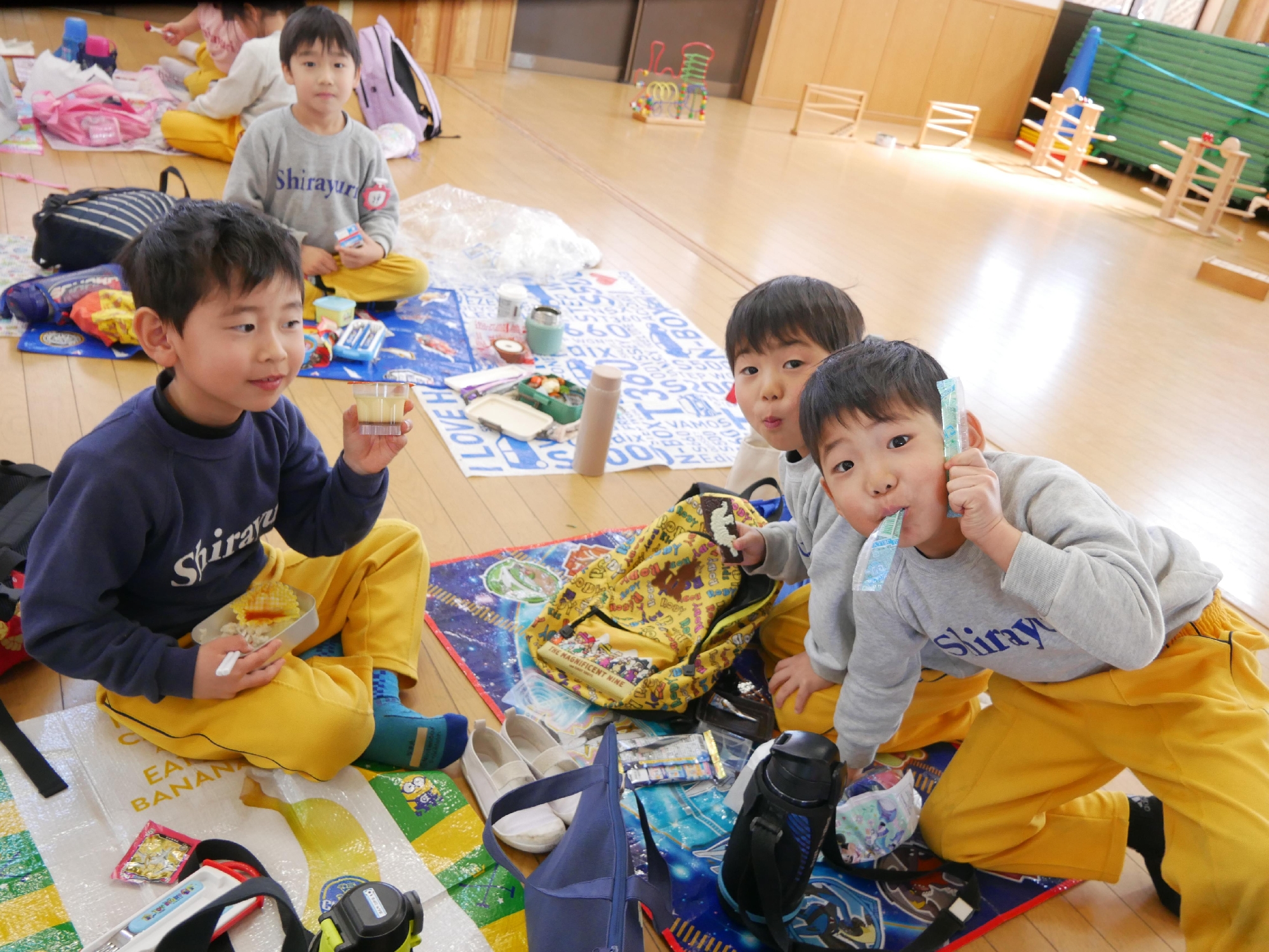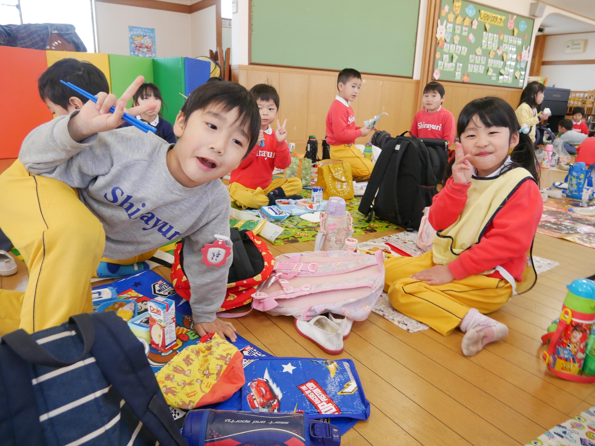 朝からリュックを背負い、お弁当やおやつを持ってきてルンルンなお友達♪