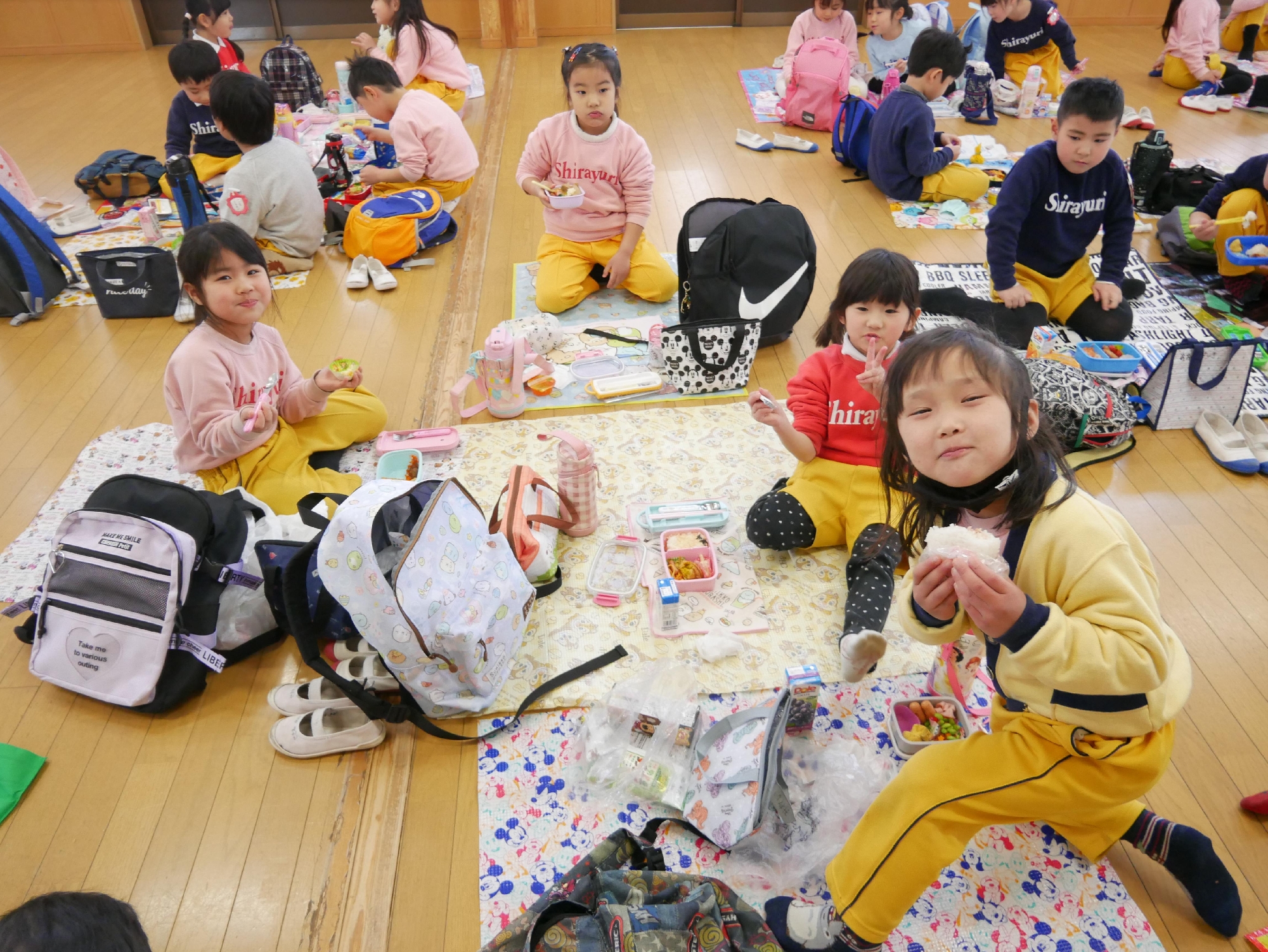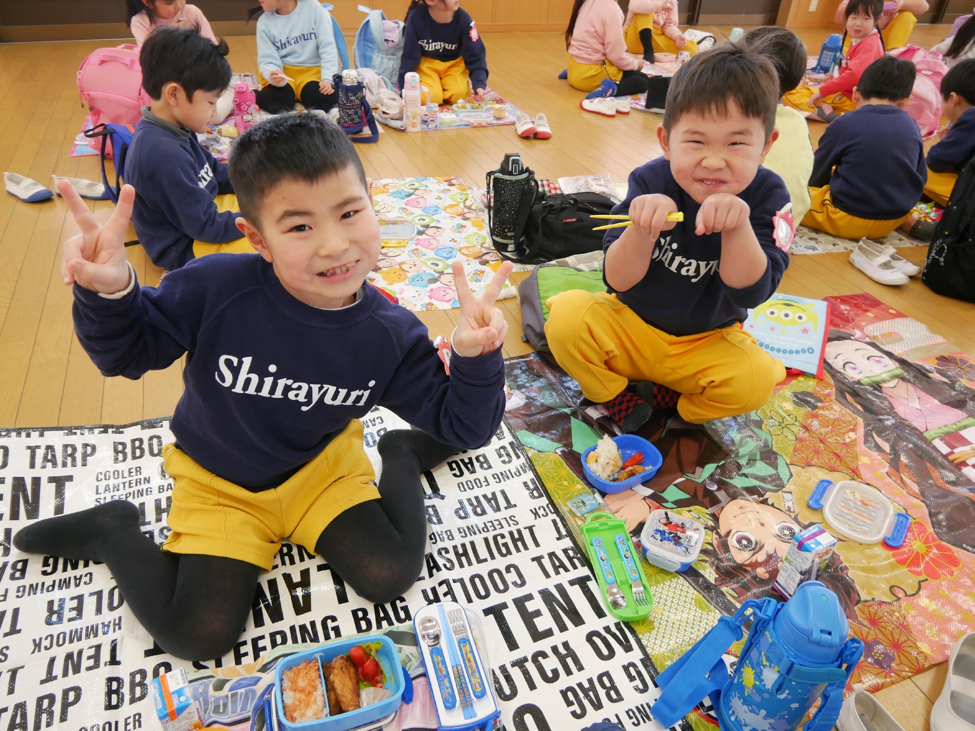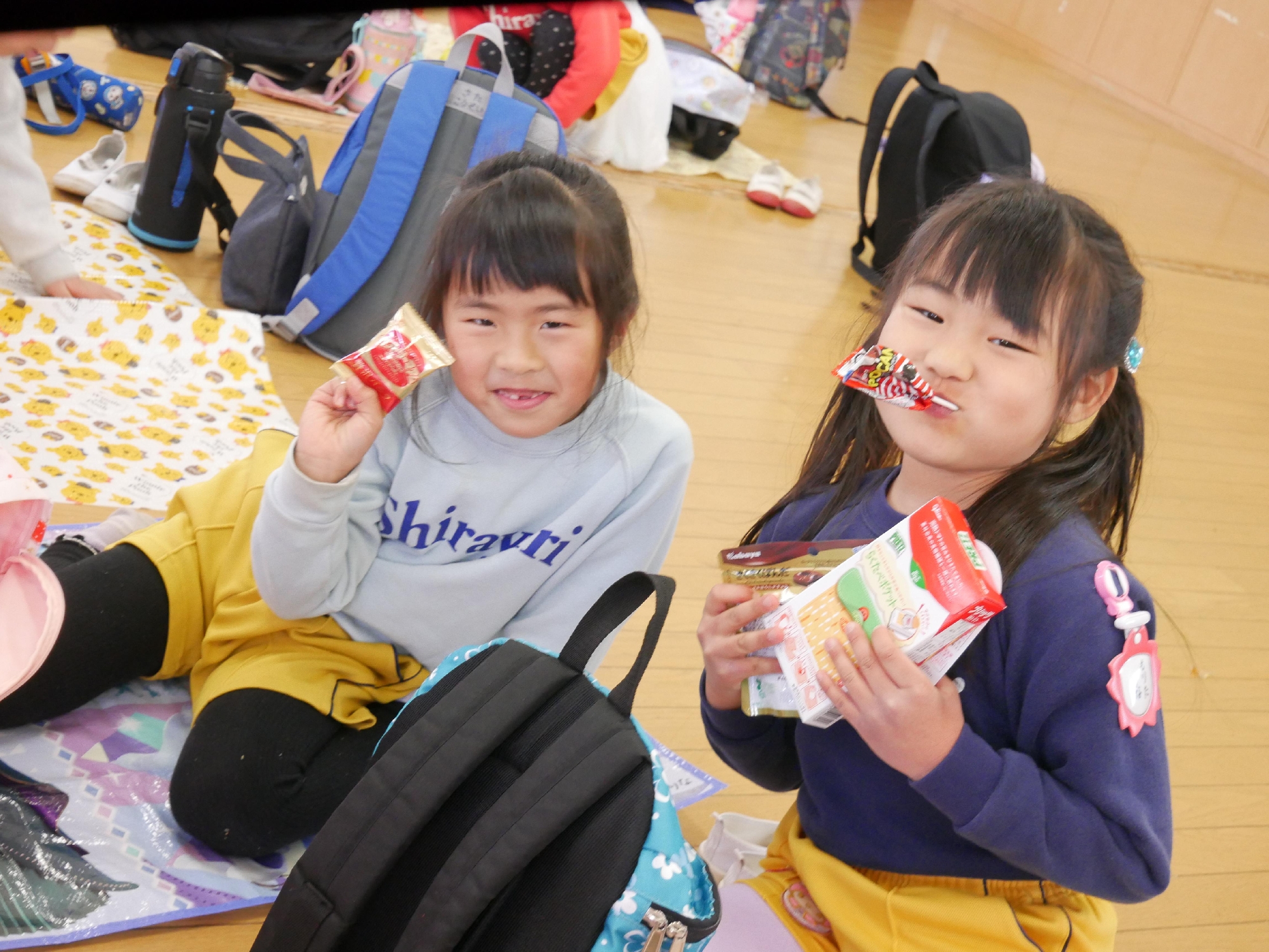 朝からリュックを背負い、お弁当やおやつを持ってきてルンルンなお友達♪
