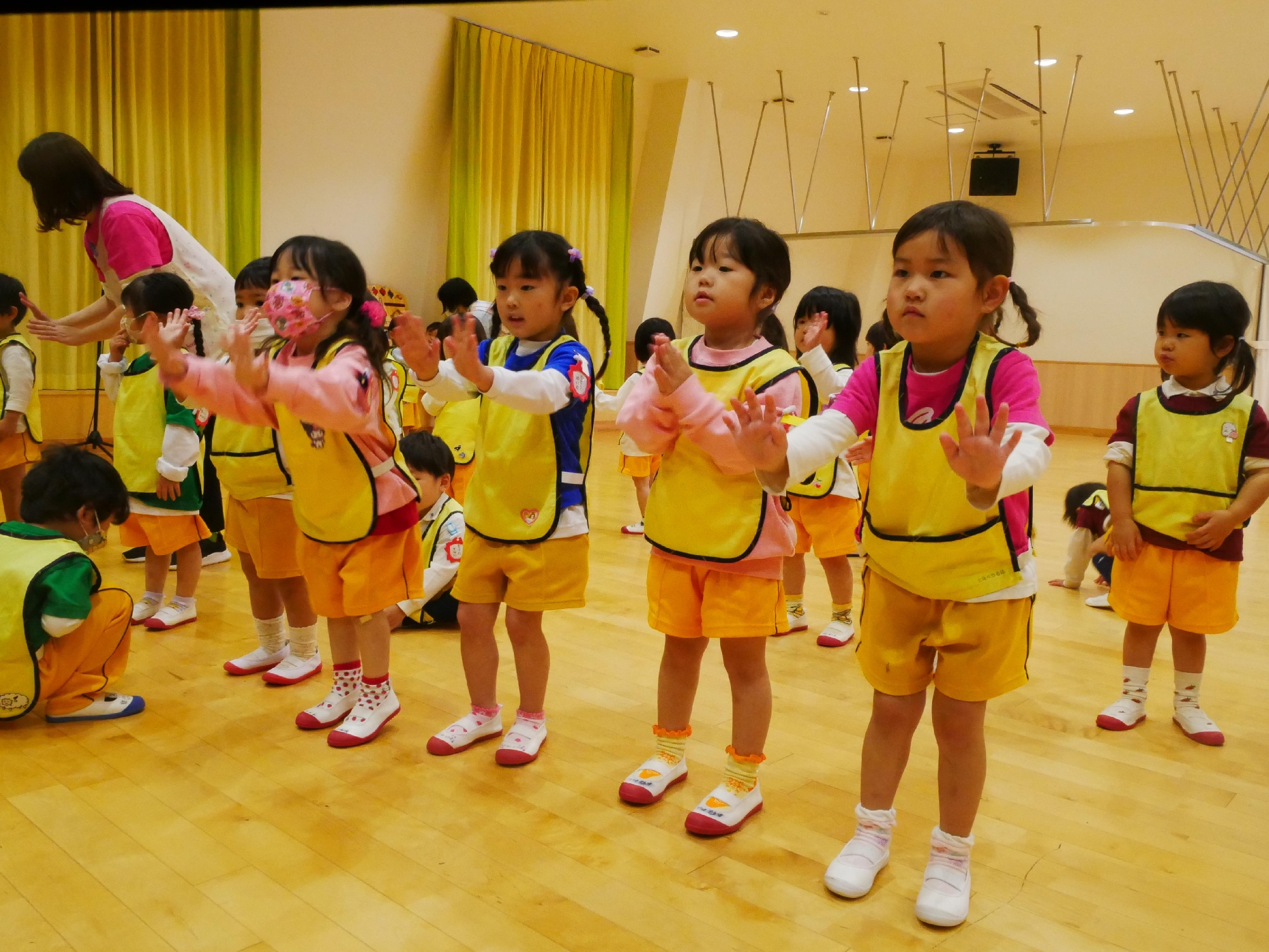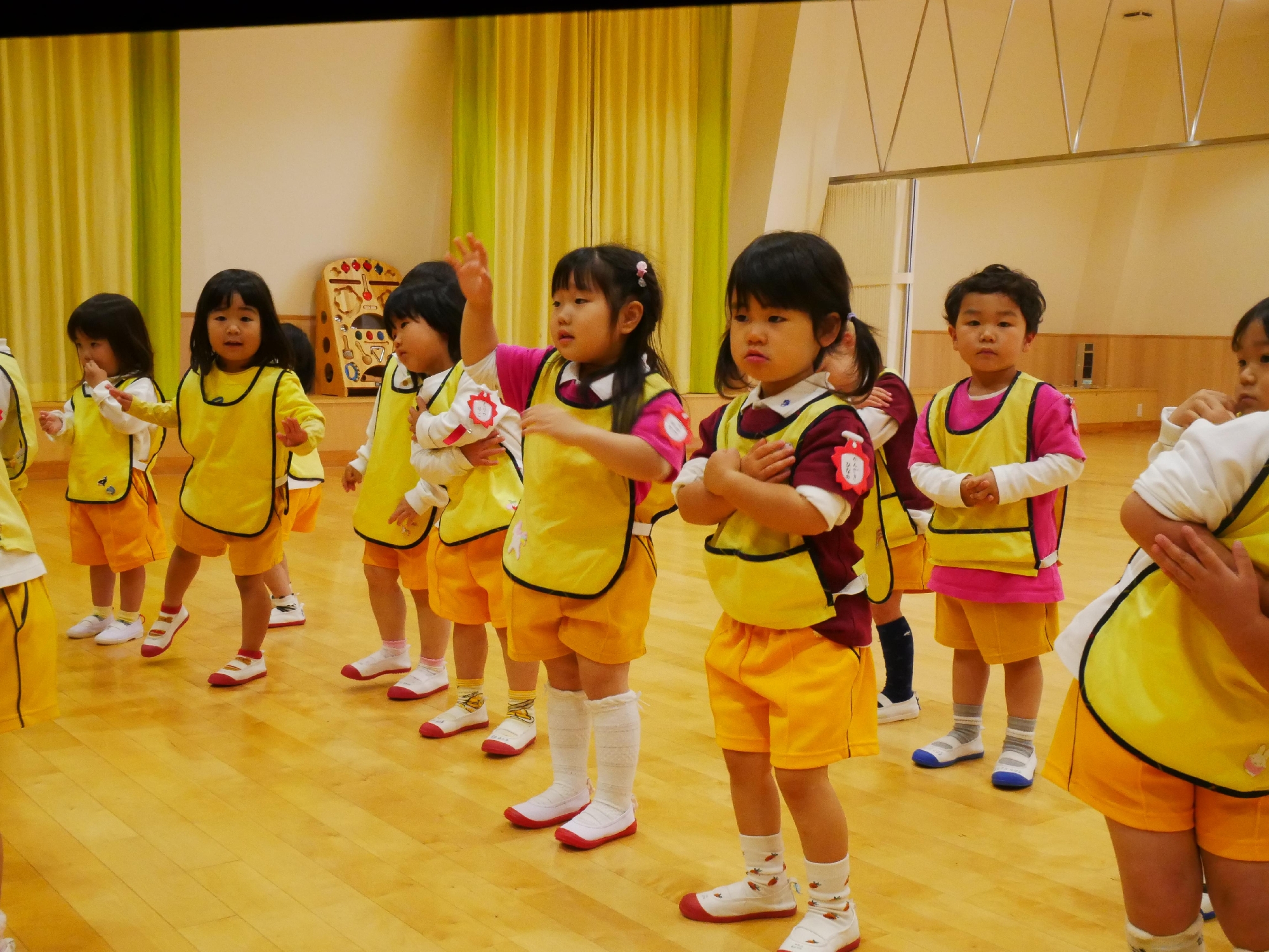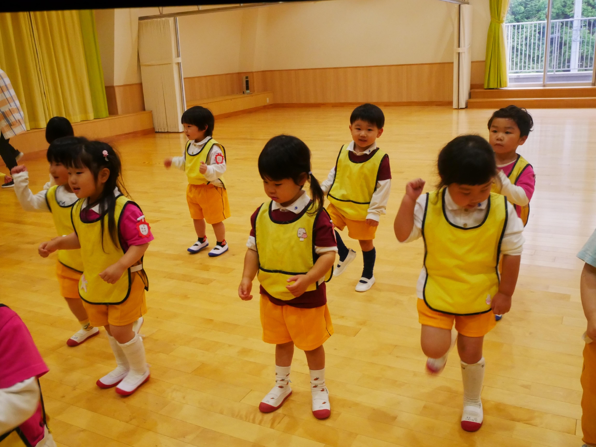 今日はホールで親子レクリエーション大会のダンス練習をしました。