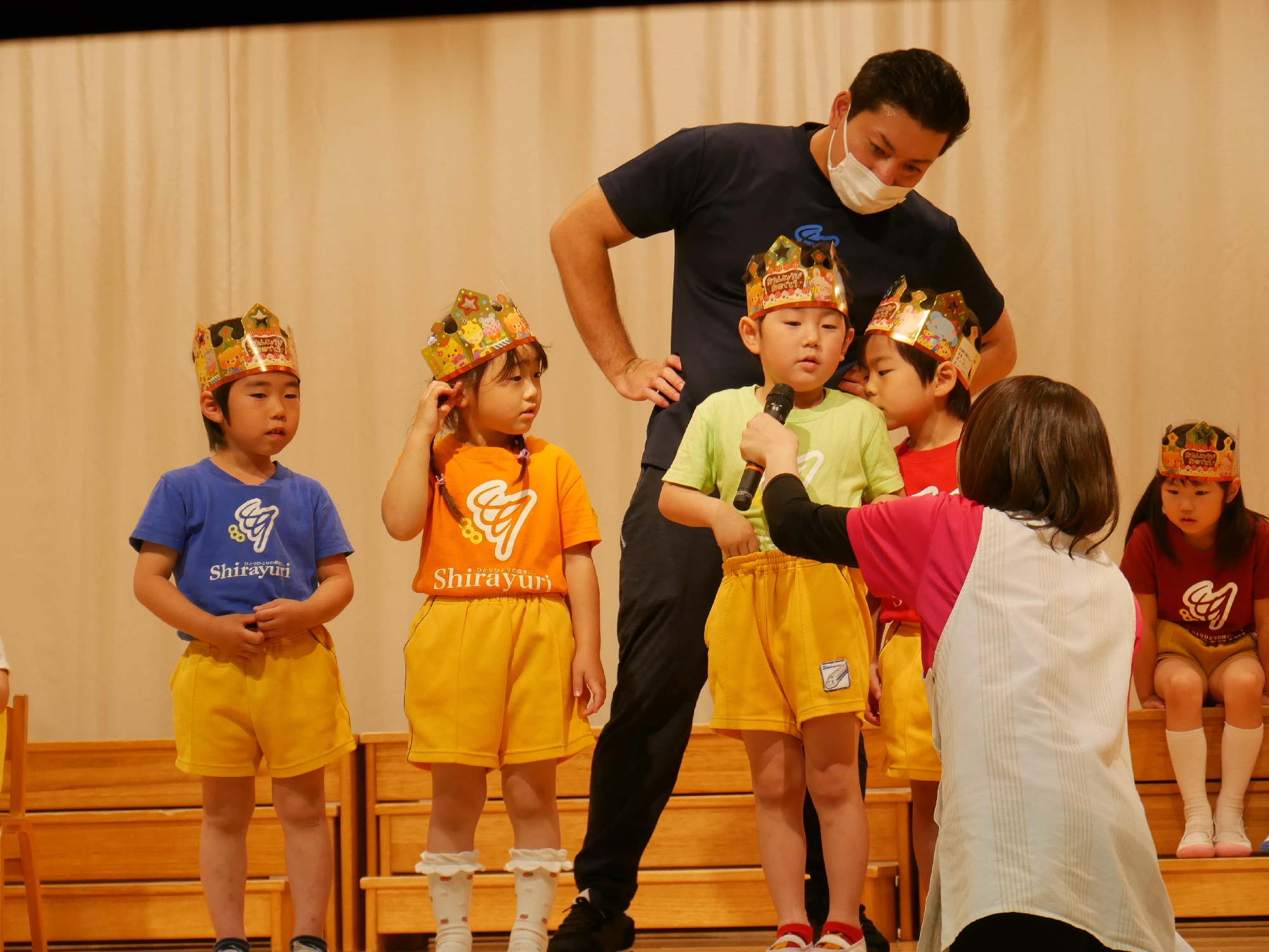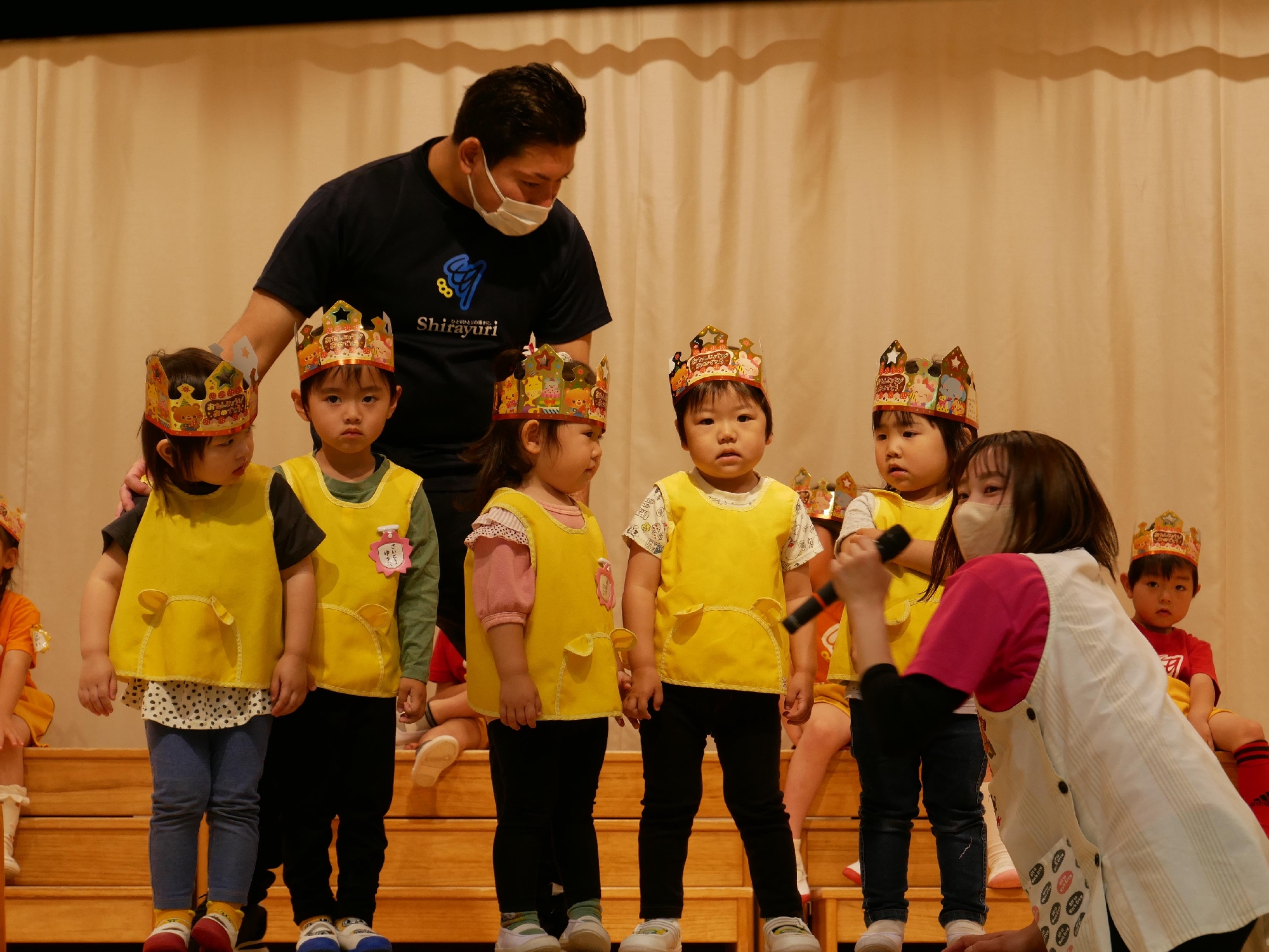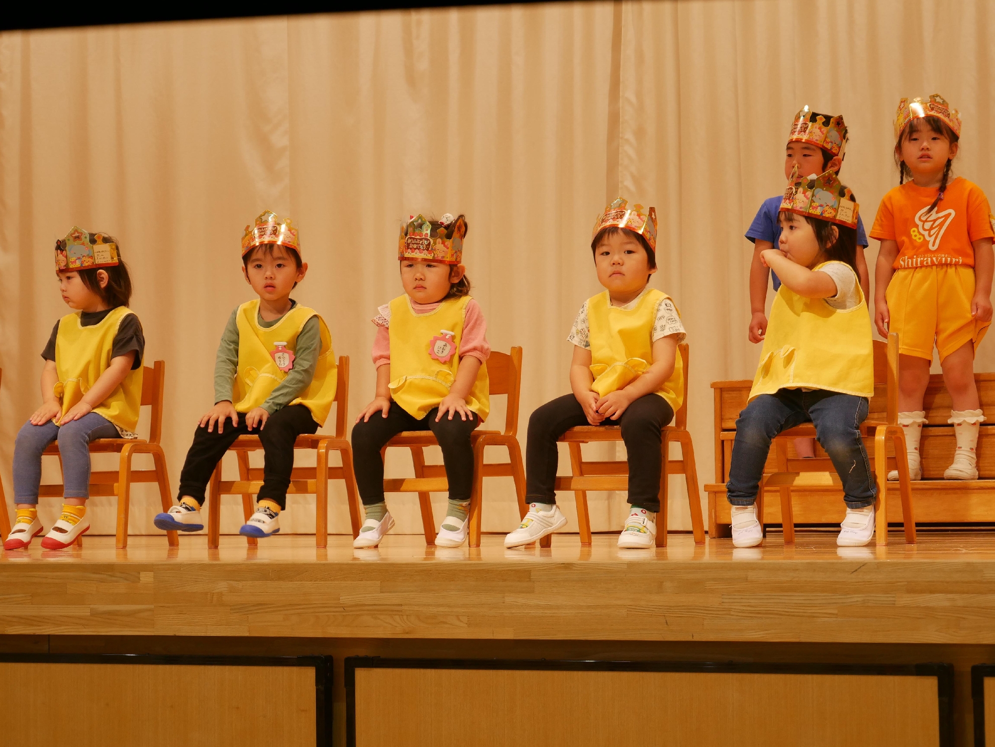 お客さんがいっぱいで、ソワソワしていたお友達もいましたが、上手にお名前やクラス、好きな食べ物等、発表できました♪