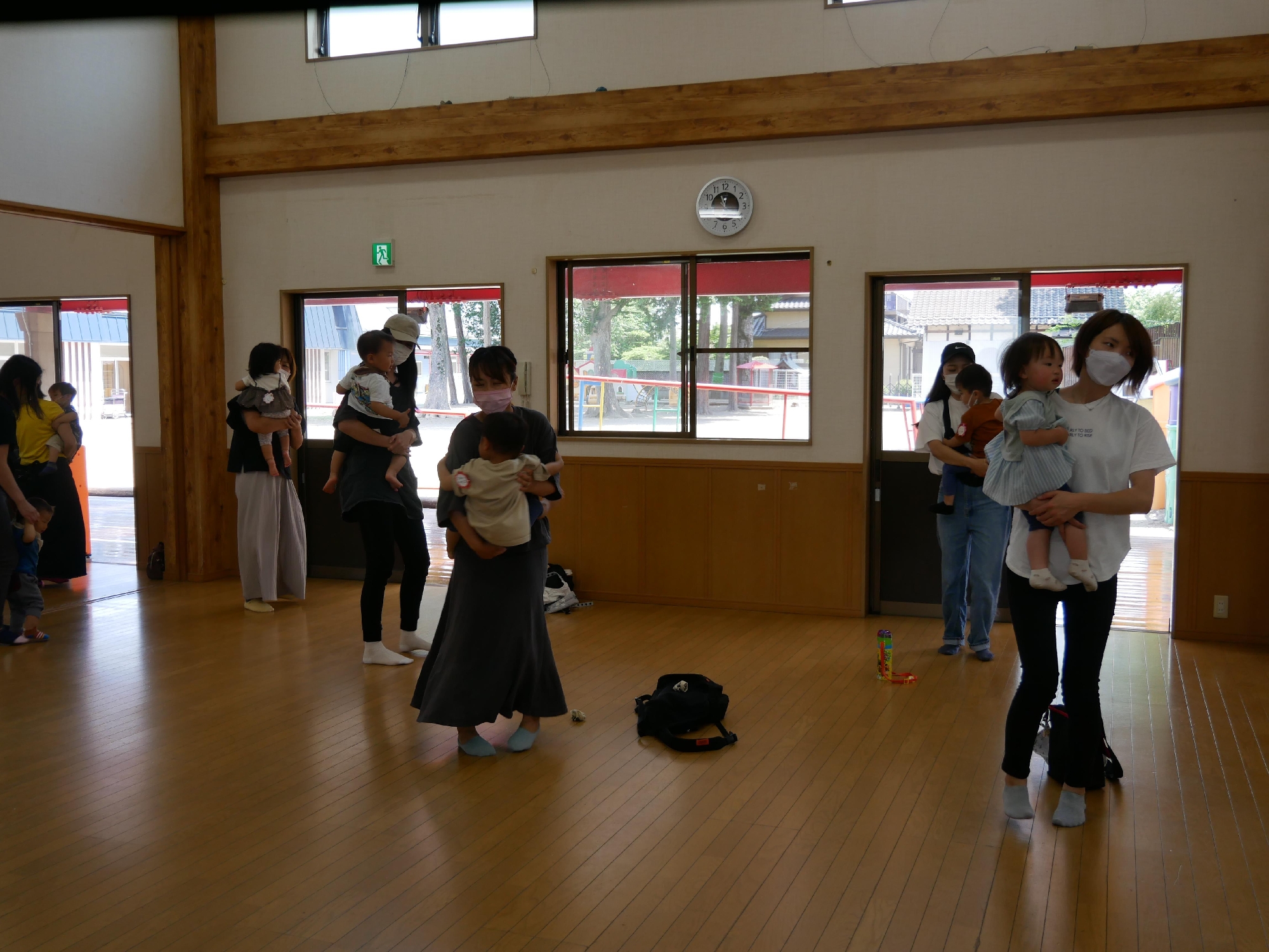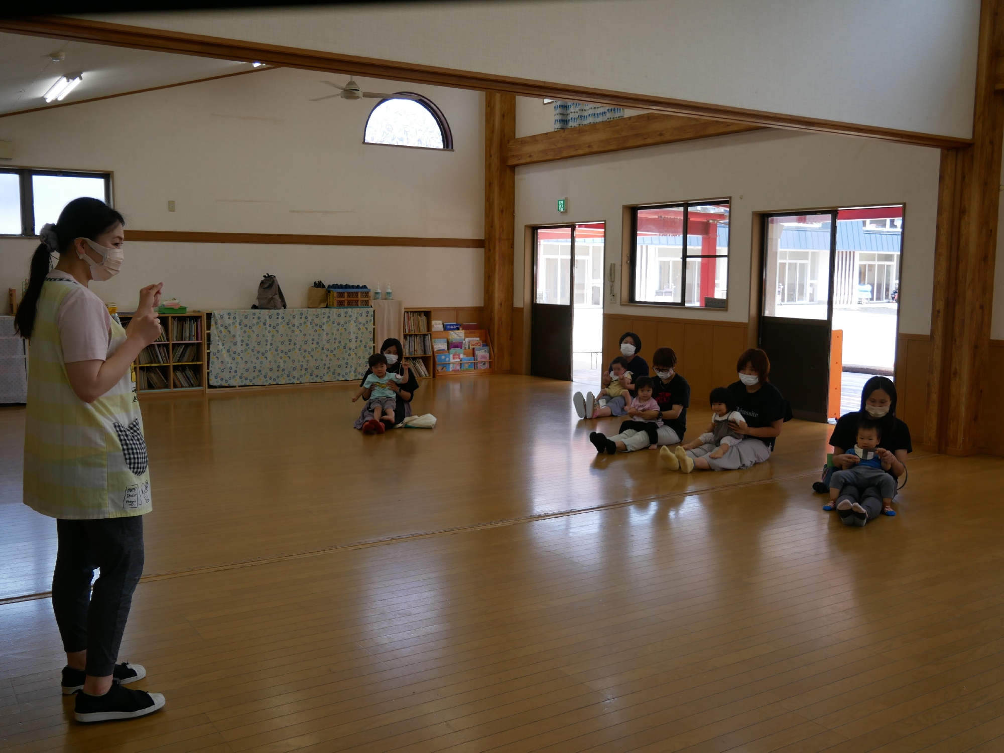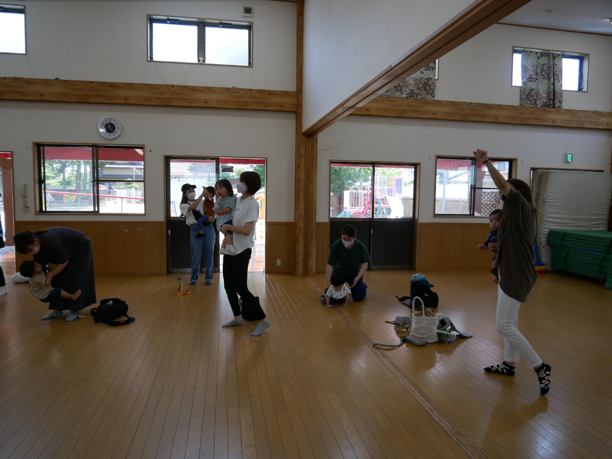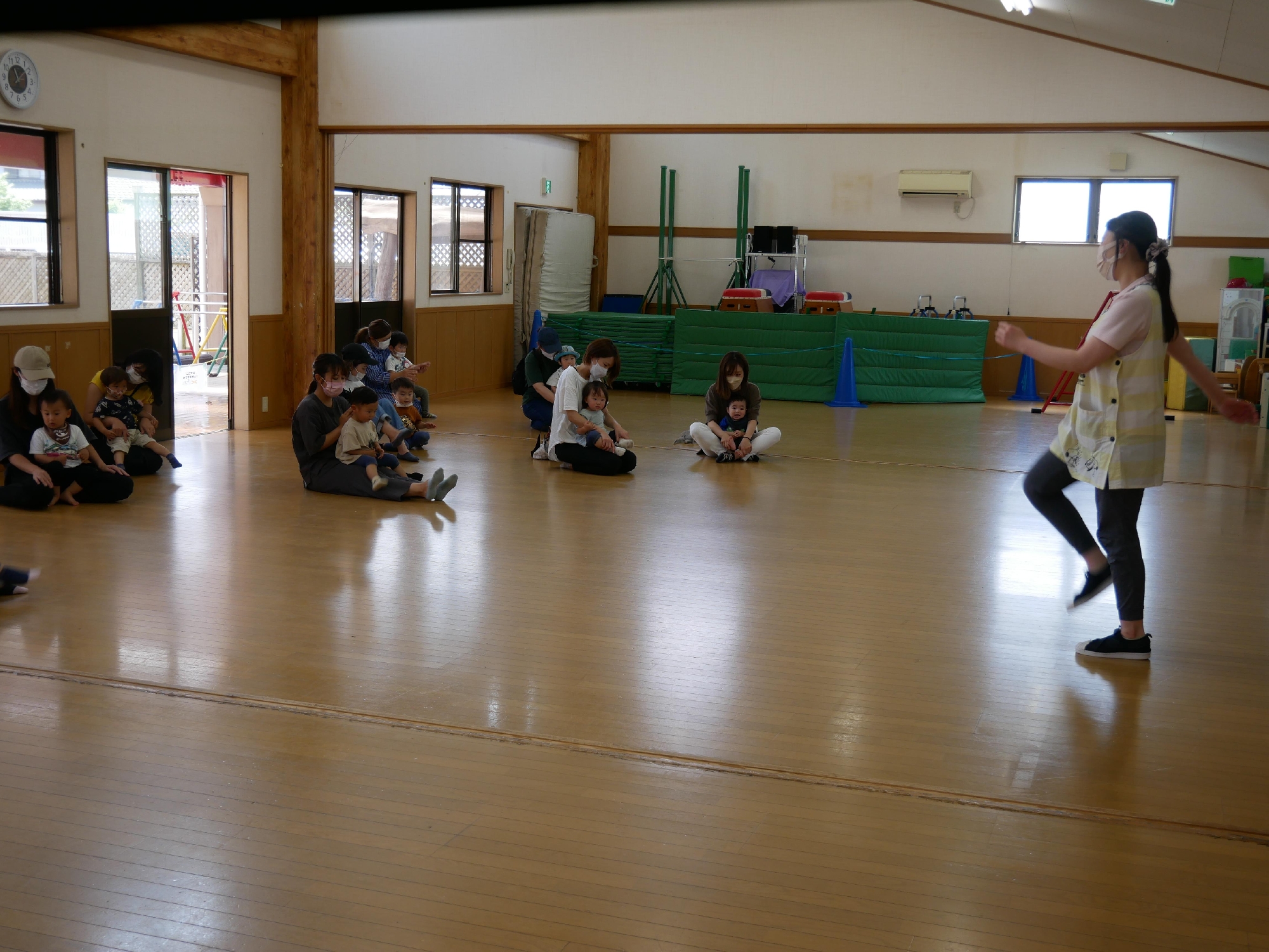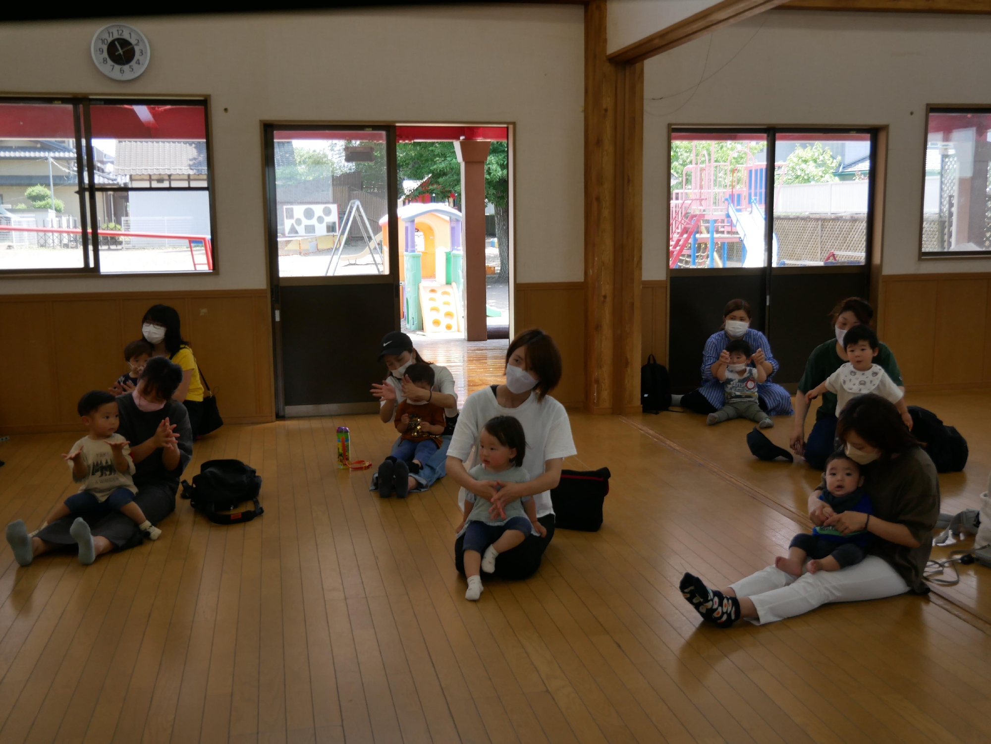 11時になったら集まり、手遊びや歌のお楽しみの時間です。