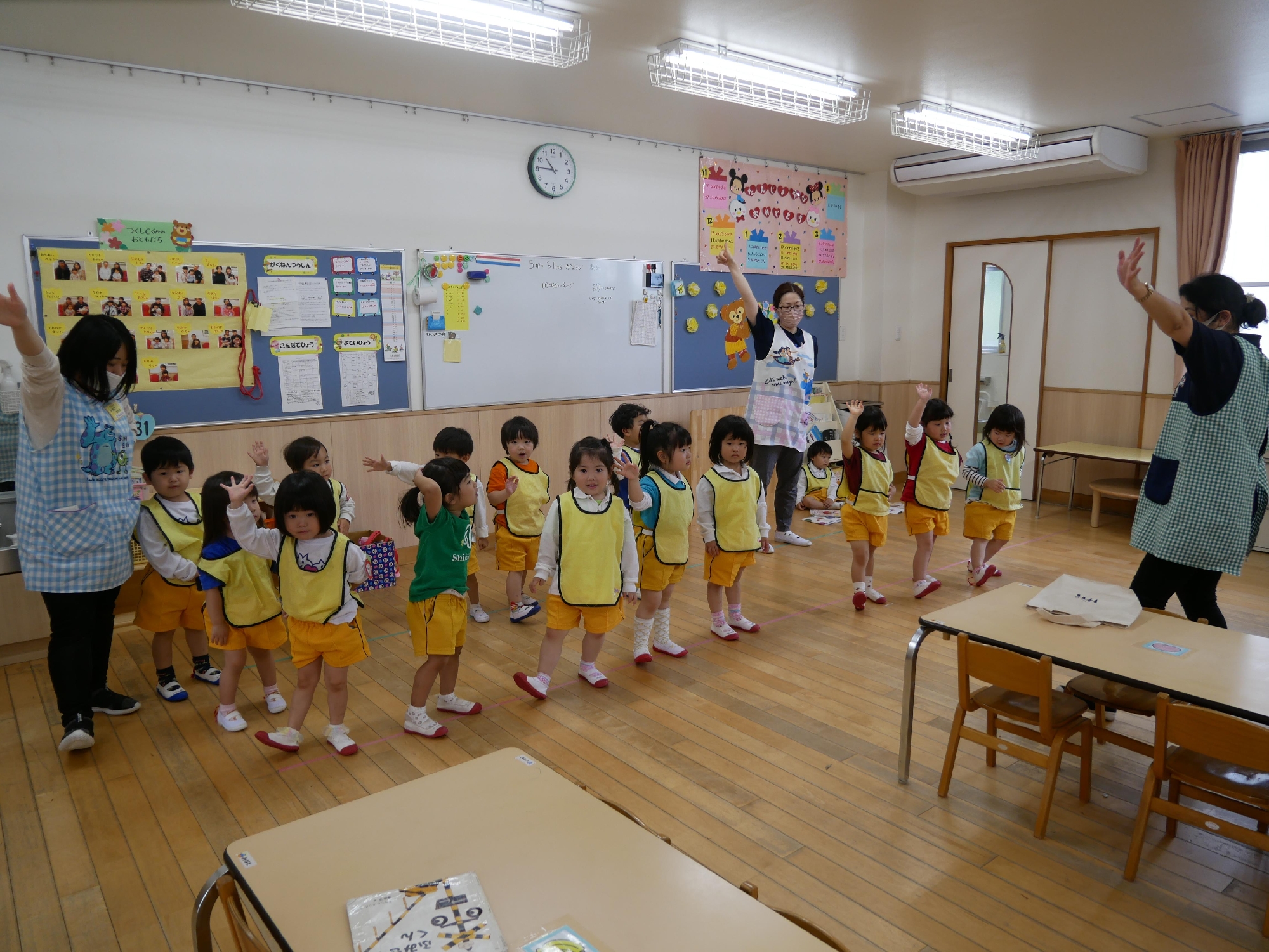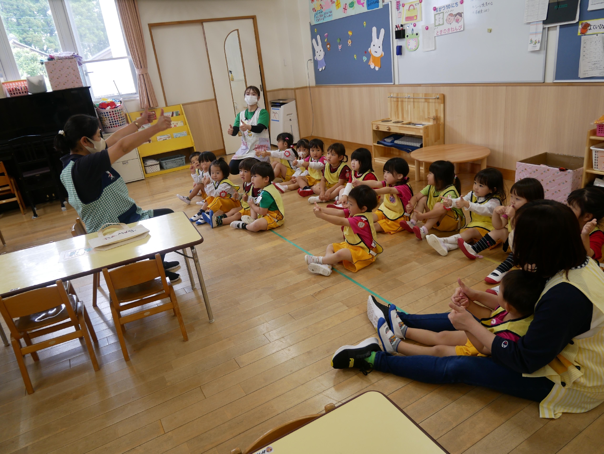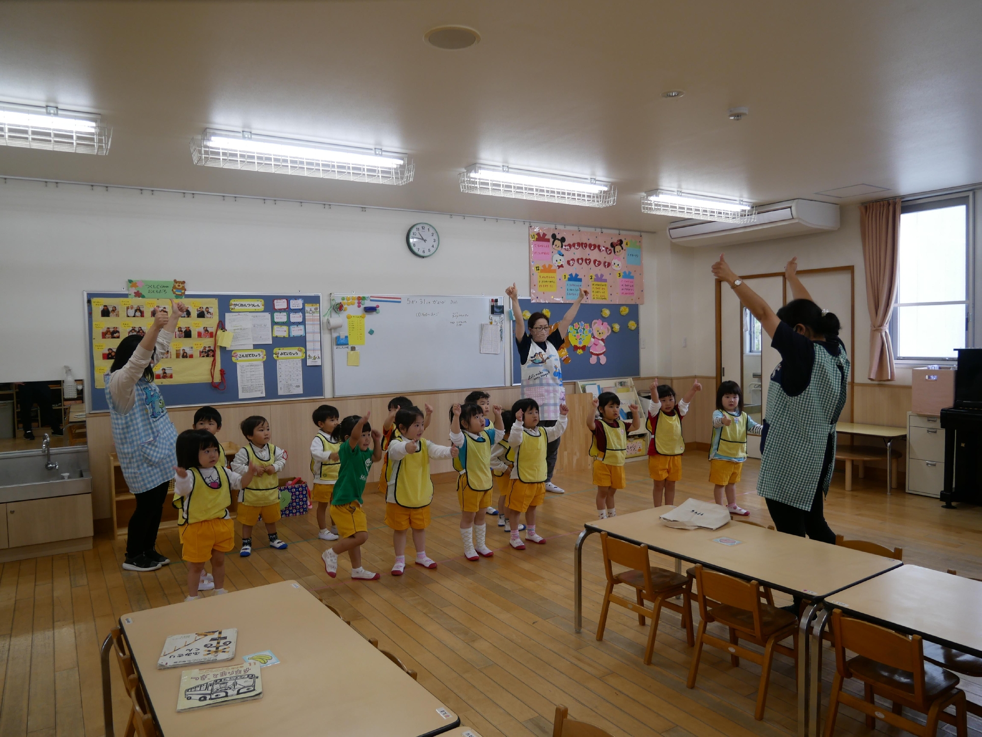 今日は、つくし組さん初めての英語であそぼうがありました。