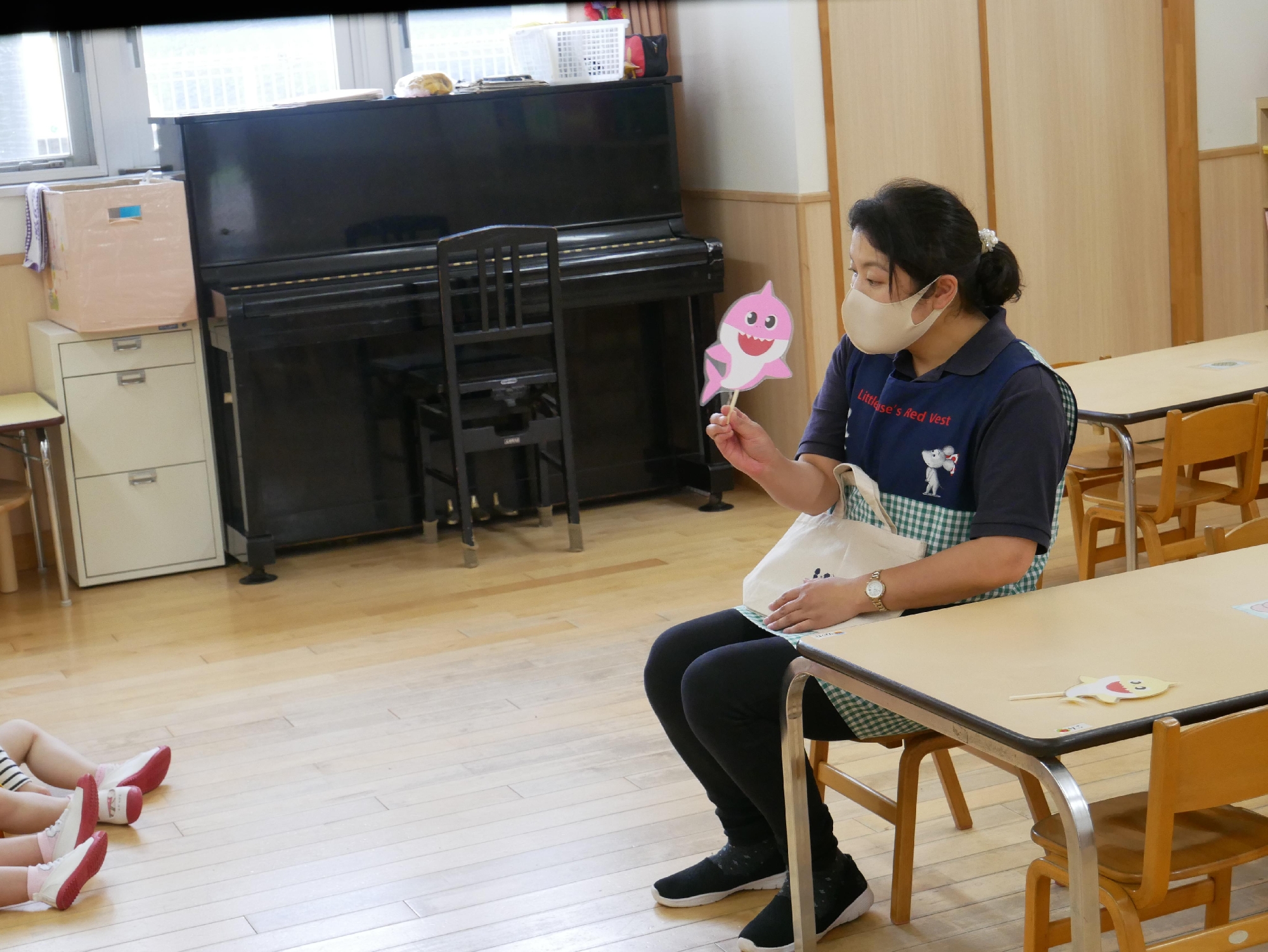 最初はちょっぴり緊張気味だったつくし組さんですが、みんなの大好きな”Baby Shark”が登場するとにっこり笑顔(^^)