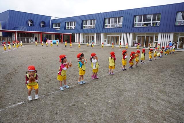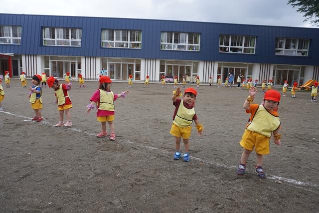 初めて3クラス一緒に、お外で踊ってみました。