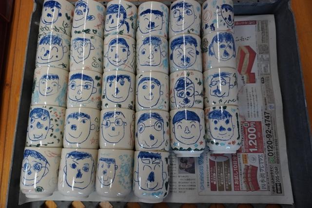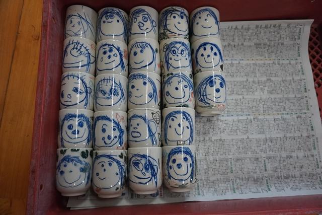 親子レクリエーション大会でお家の方にプレゼントする陶芸の湯呑み(とんぼ組・ほし組の作品)が出来上がりました。