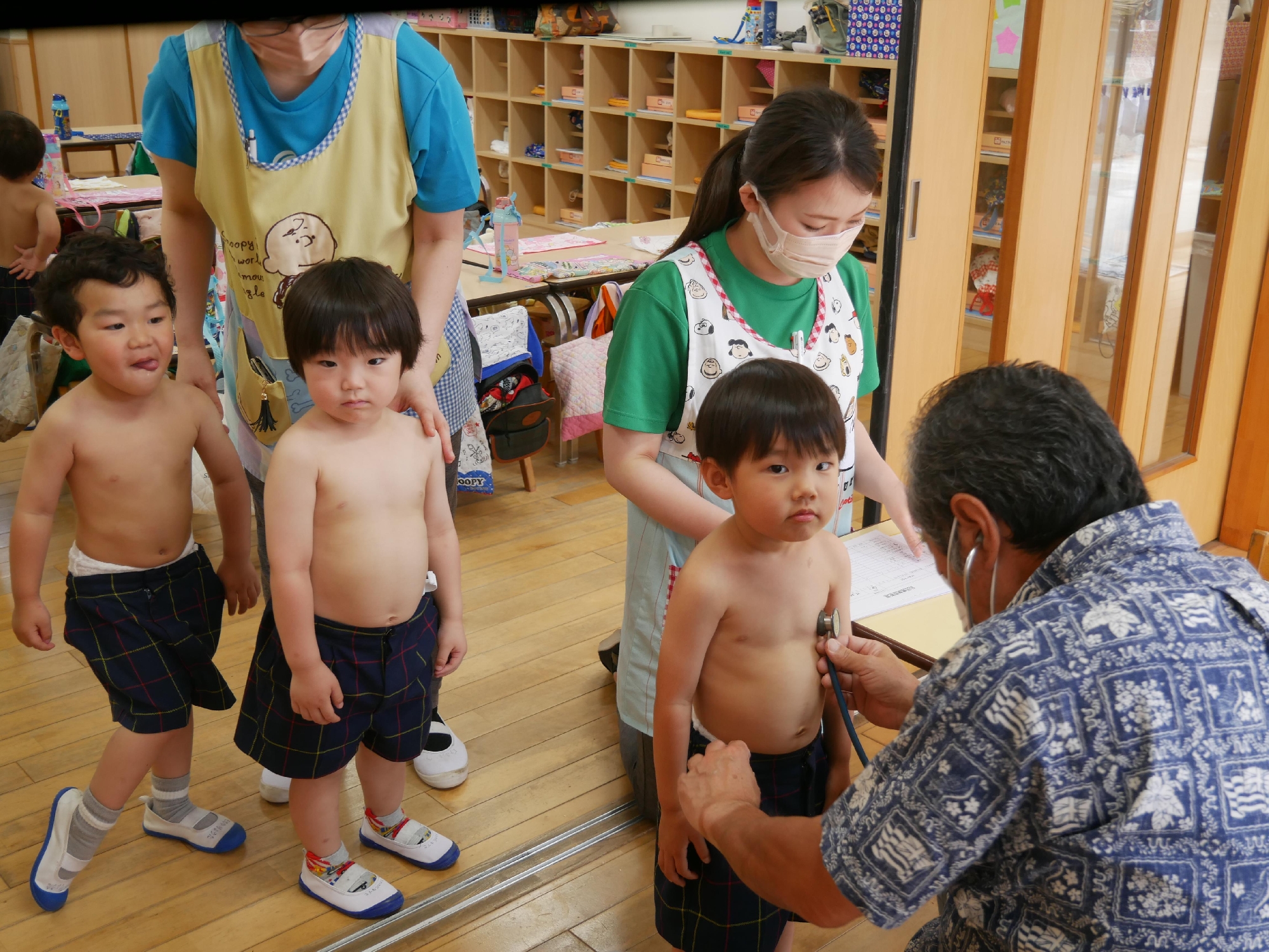 今日は、先週に引き続き内科検診(ひよこ組・なかよしランド・つくし組)がありました。
