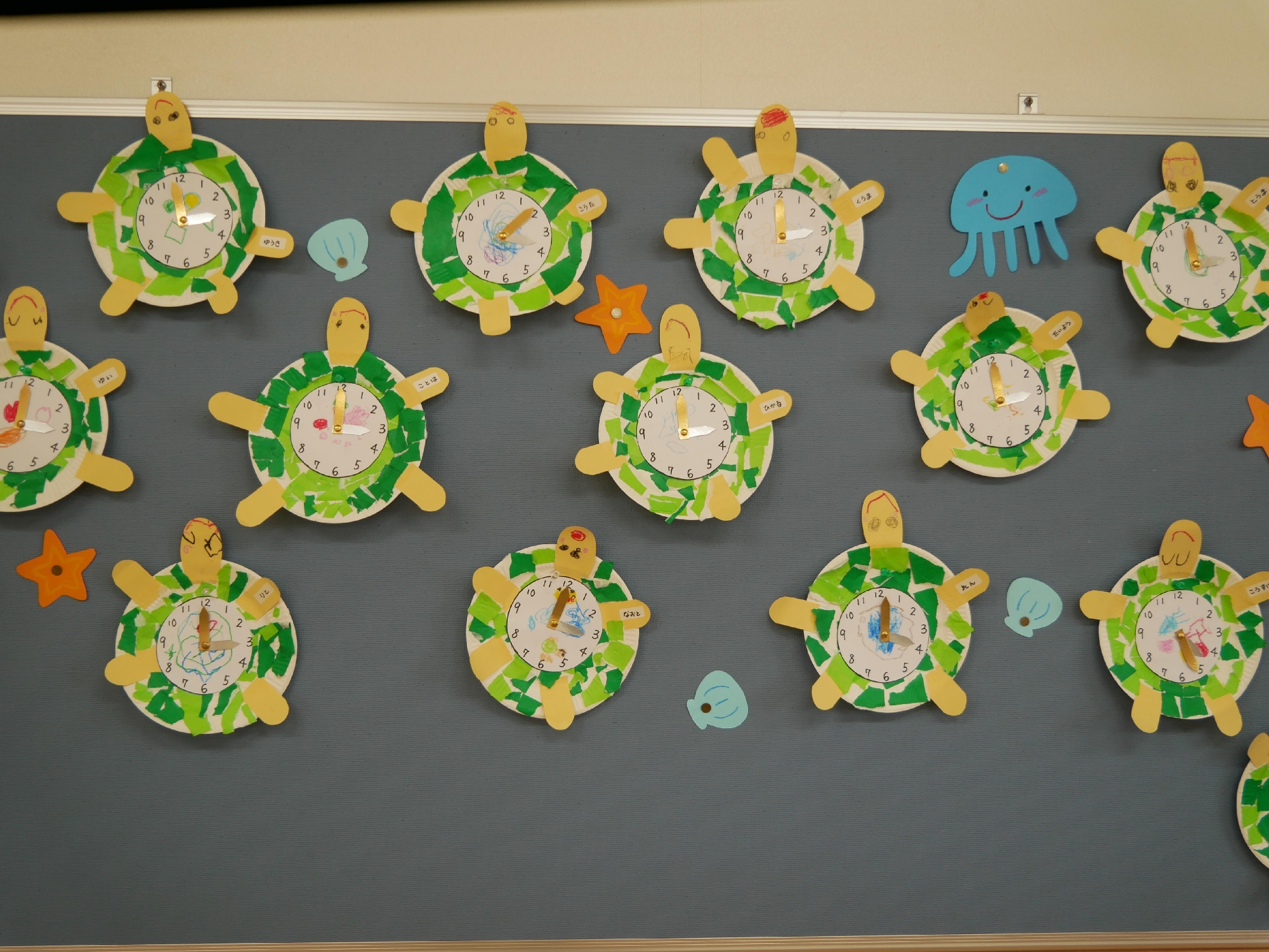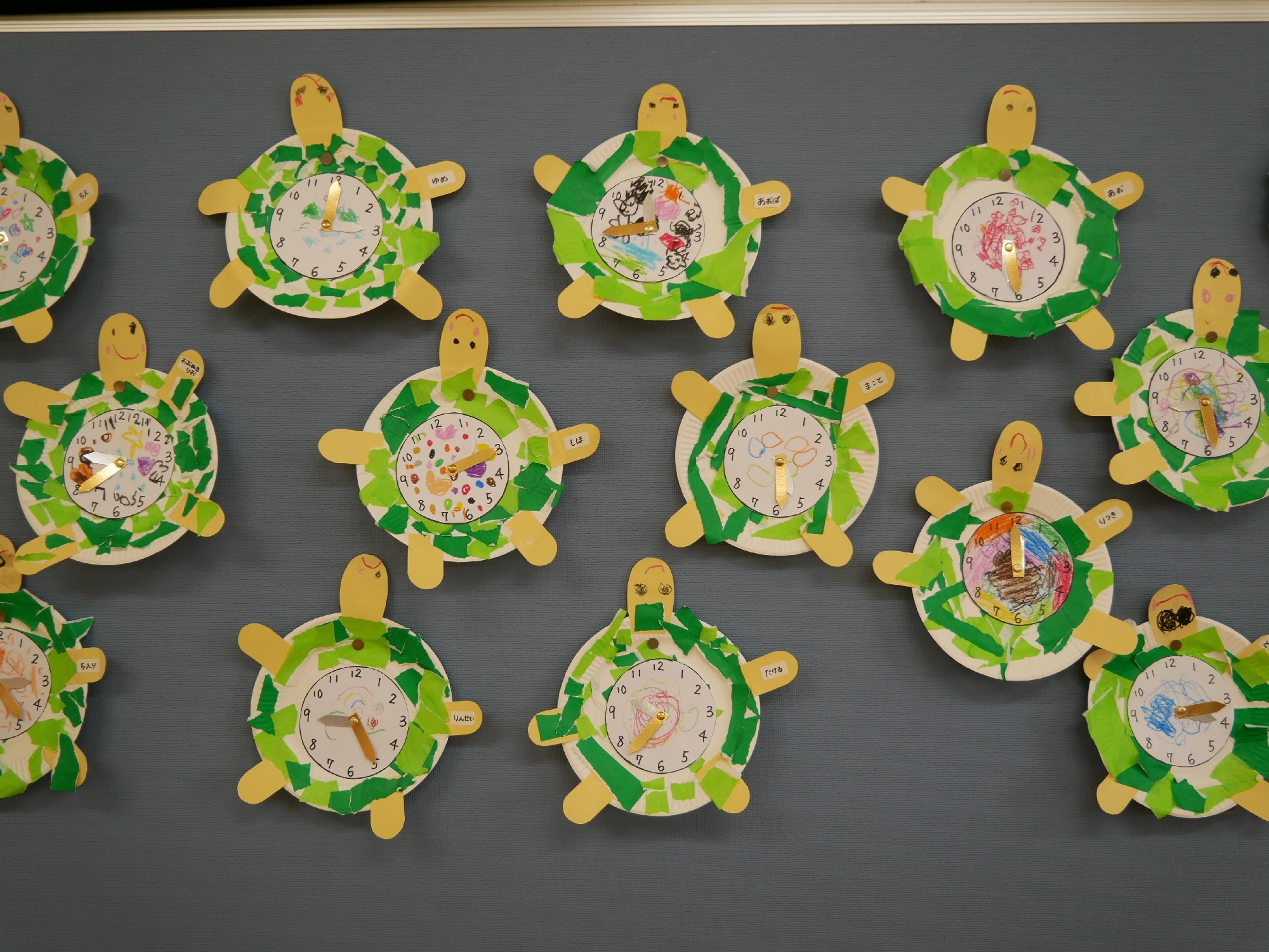 紙皿を使ってカメの時計を作りました。