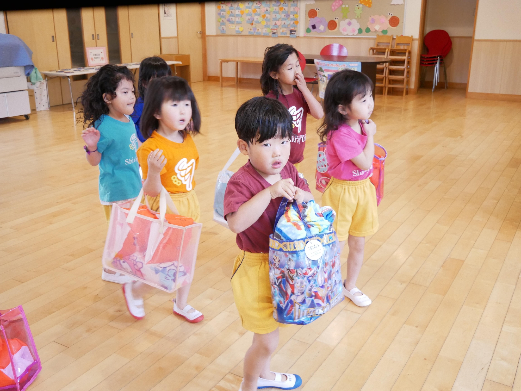 とんぼ組さんはスイミングがあり、元気に「ただいま!」と帰ってきました。