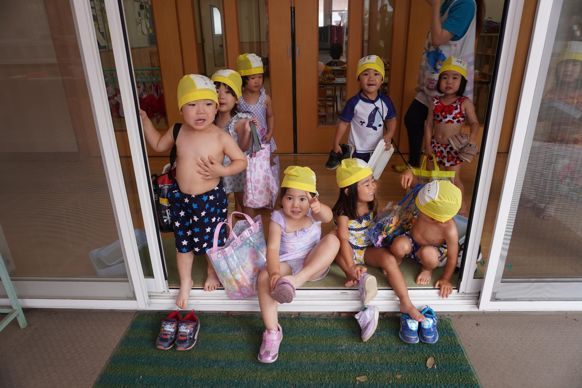 プールバッグを使える日がきて、みんなとっても嬉しそう♡