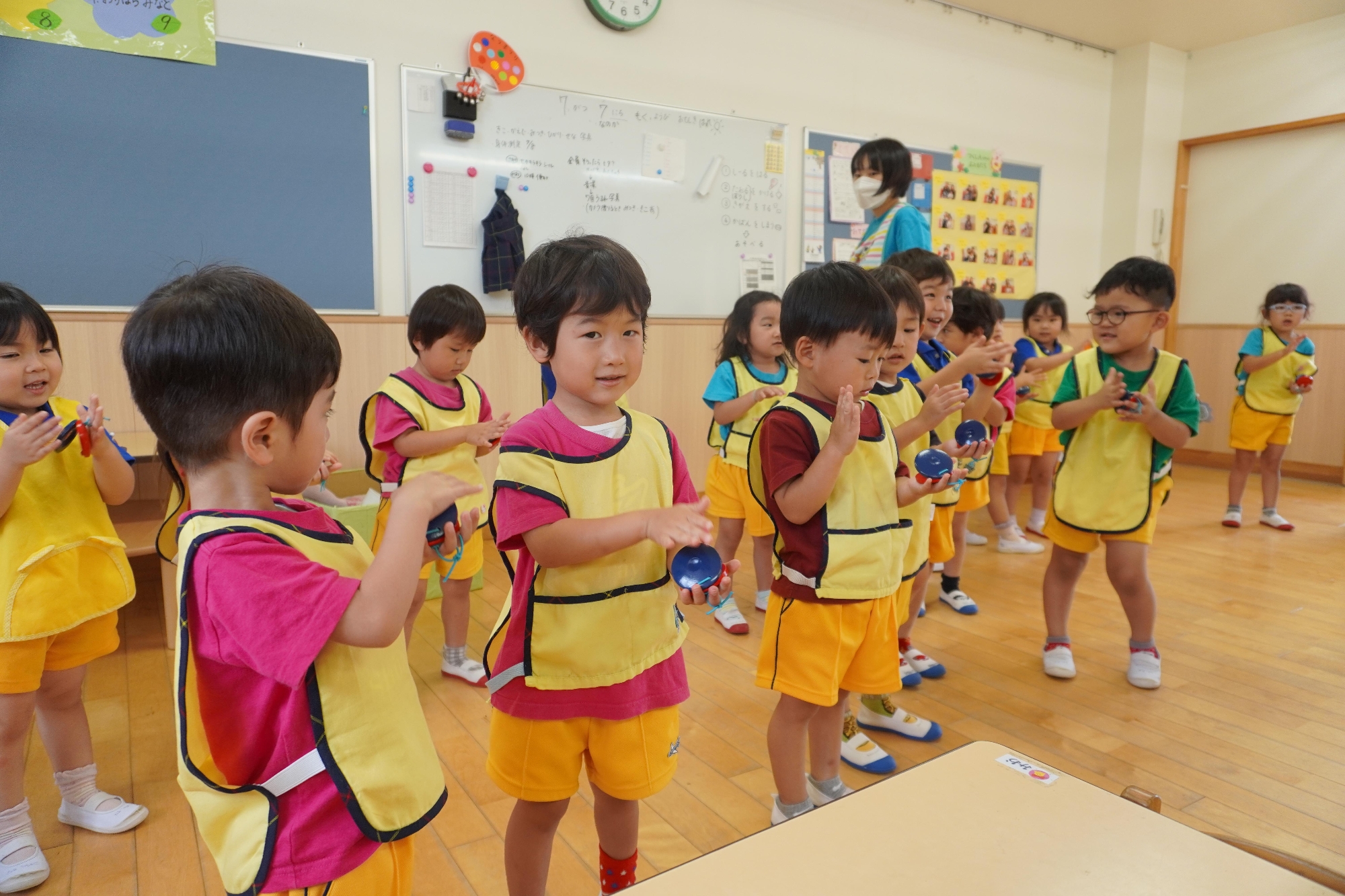 カスタネットのリズム打ちや、♪七夕の歌 は鈴の音で天の川も表現しました。