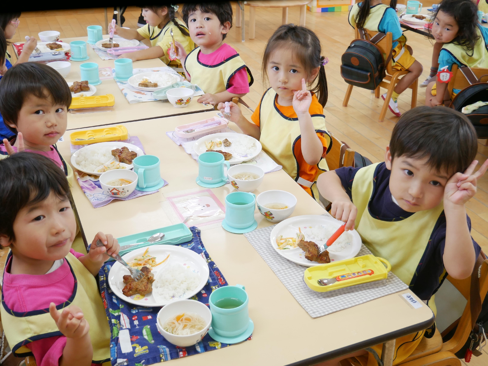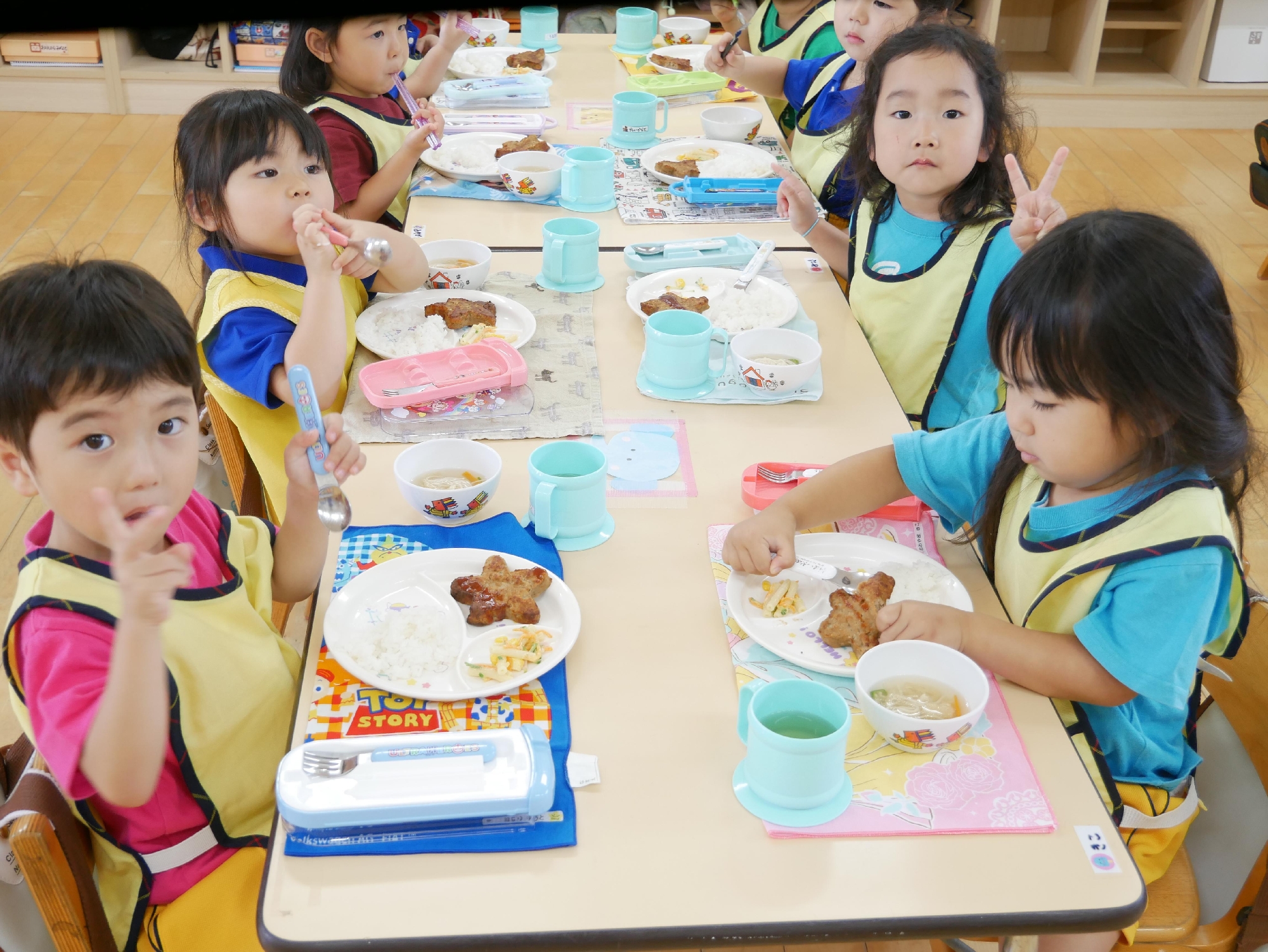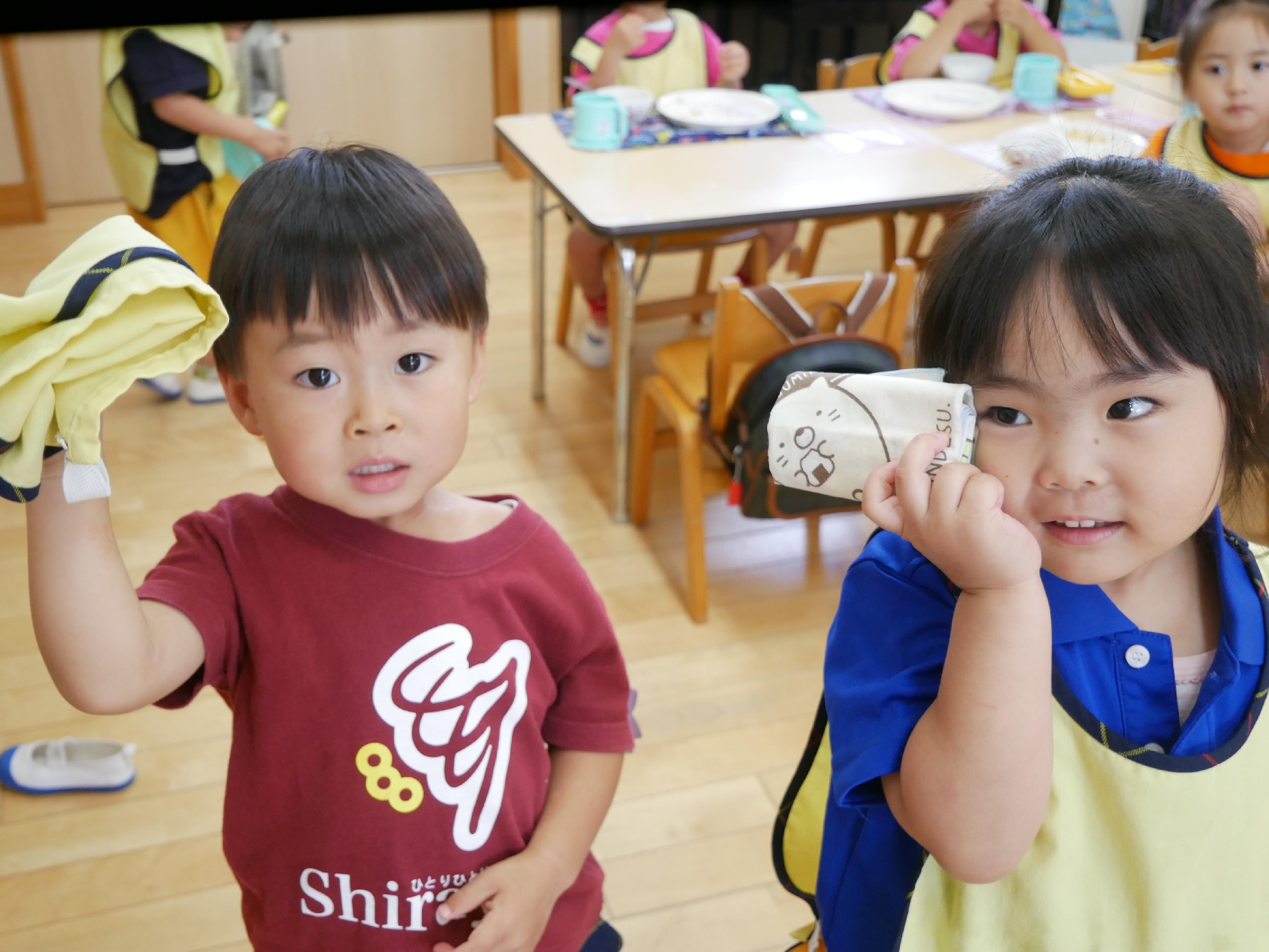 きれいに完食しおかわりするお友達や、ナフキンや半ズボンをきちんとたたでしまっているお友達がいました。