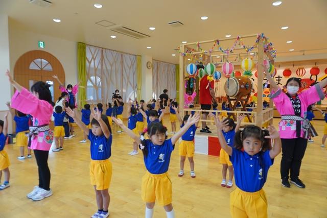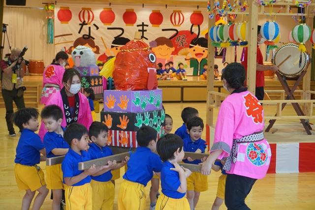 その後は、しらゆり音頭を踊ったり、とんぼ組はみんなで作ったおばけのお神輿を担いだり、