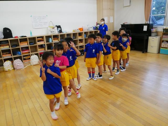 ♪キャンプだ、ホイ!を歌ったり、はらっぱ広場にお散歩に行ったり、
