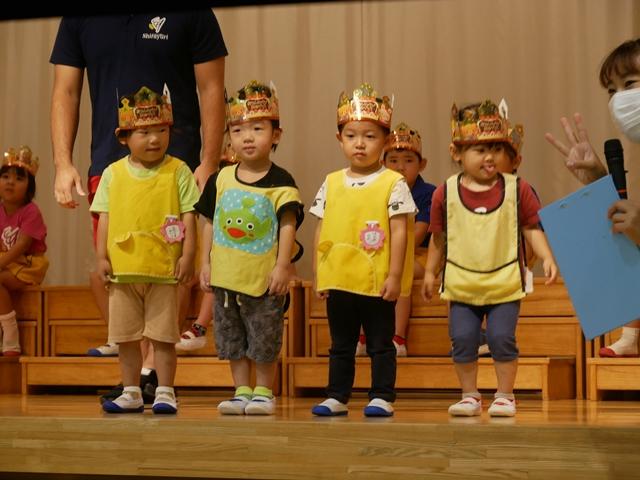 お誕生日のお友だちは、キラキラの冠をかぶり、舞台に上がりました。