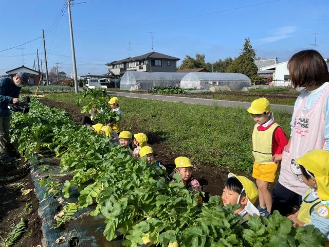 なかよしランドからほし組のお友だち、楽しみにしていた大根抜きを行いました。