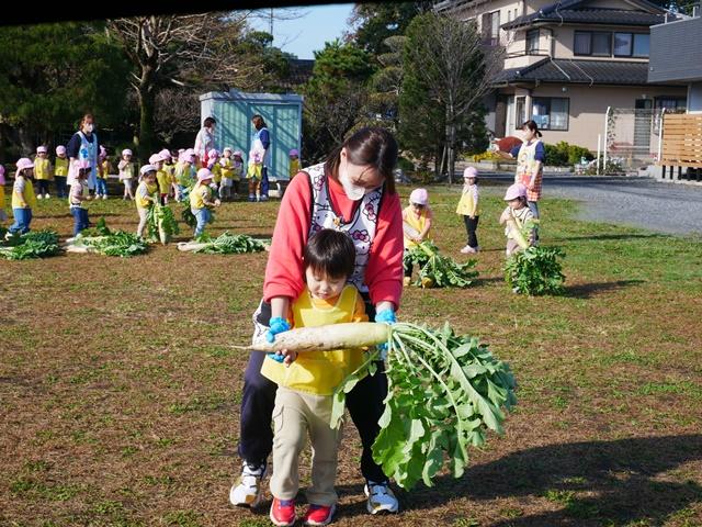 お家へのお土産!と重い大根も幼稚園まで大切に抱えて歩きました。