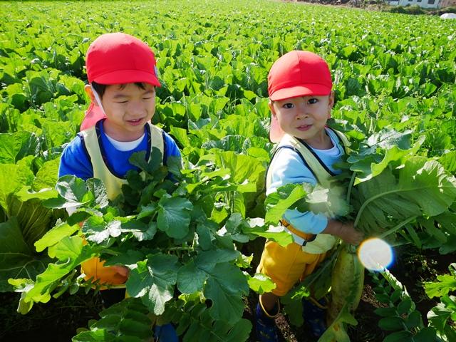 なかよしランドからほし組のお友だち、楽しみにしていた大根抜きを行いました。