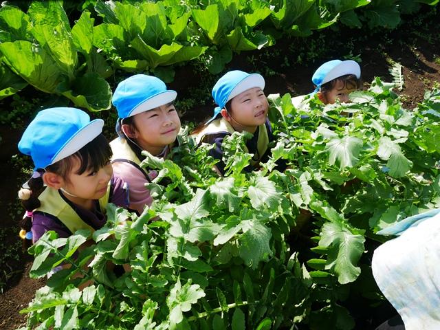 さて、とんぼ組さんも畑について大根の大きさにびっくり!