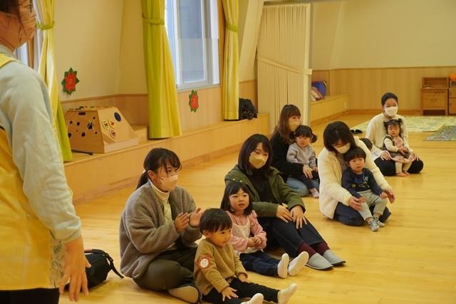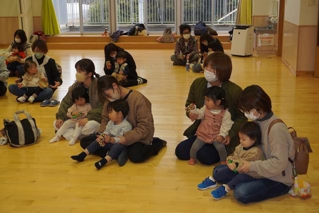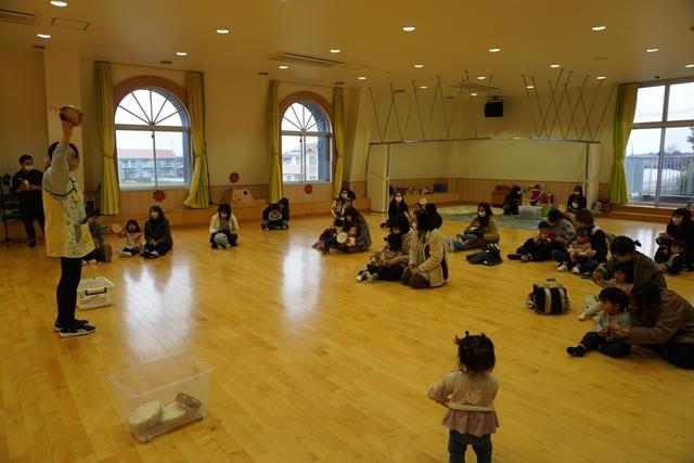 曲に合わせ、リズムに乗って身体を動かしたり、鈴やタンバリンの楽器が鳴り響きます♪