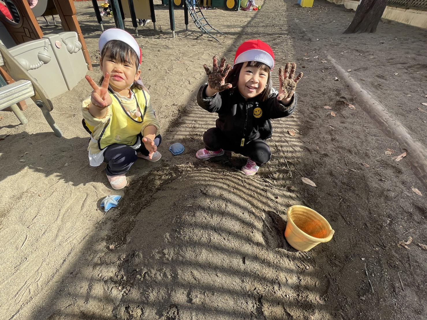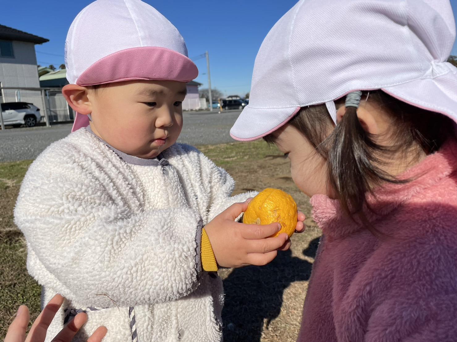 ひよこC組のお友だちも日当たりの良い場所でお外遊び♪