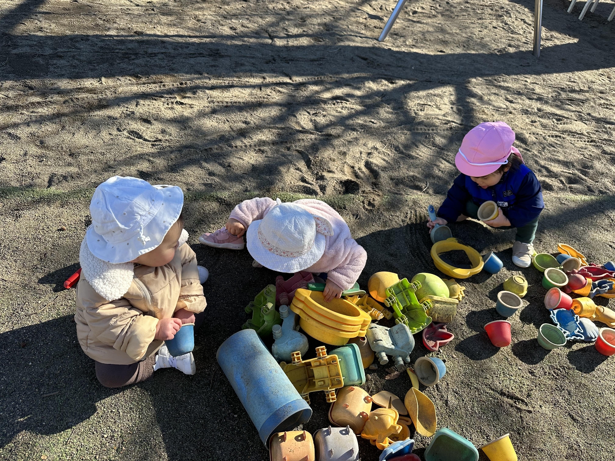 ひよこC組のお友だちも日当たりの良い場所でお外遊び♪