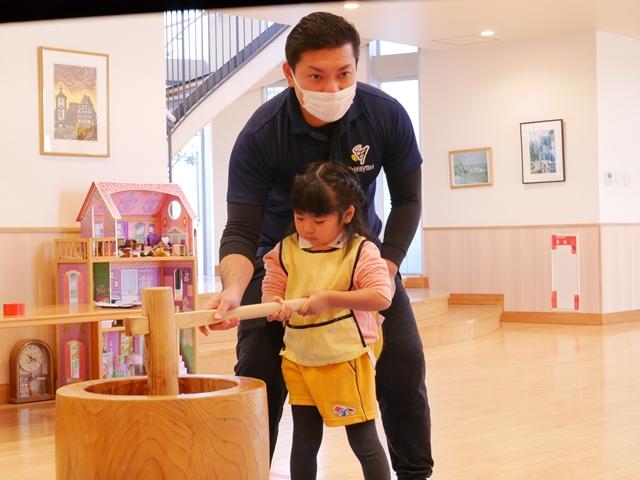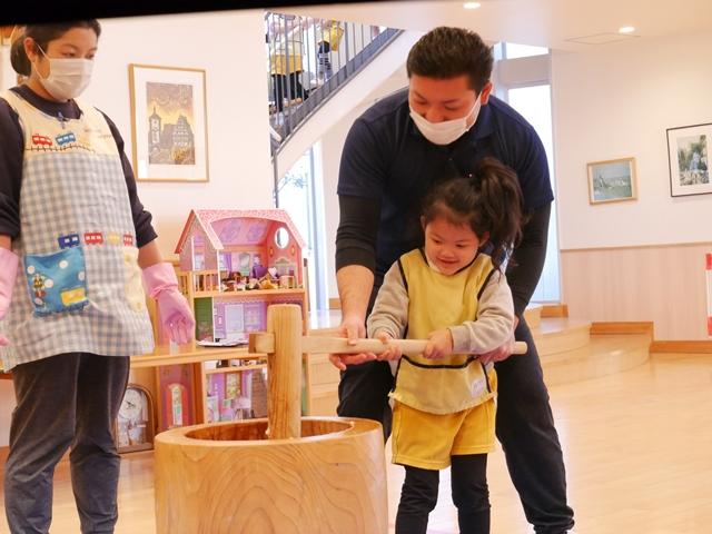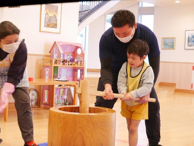 今日は、園内行事で餅つき大会を行いました。