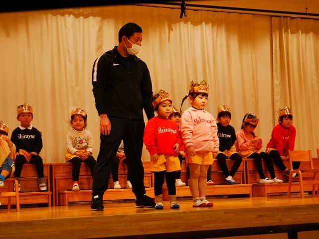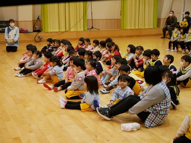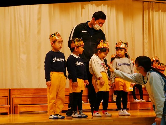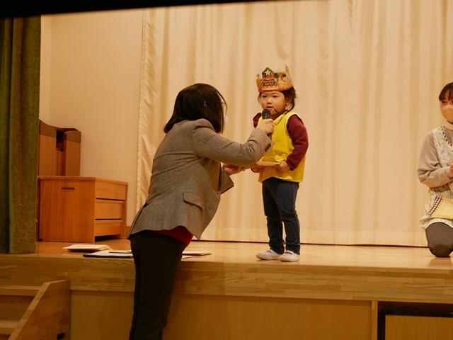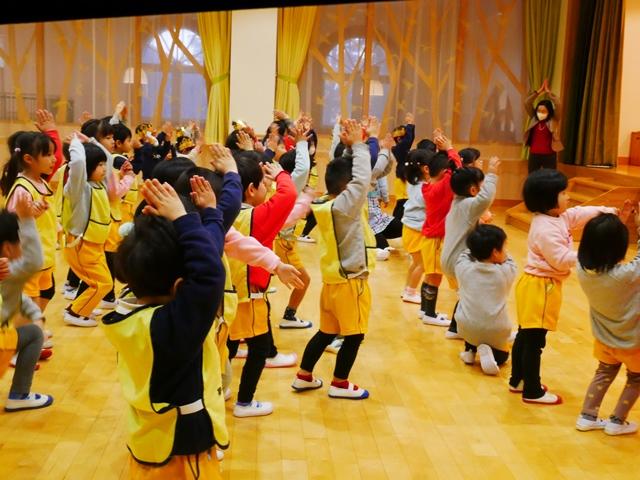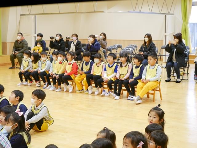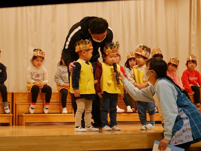 みんなでホールに集まり、1月生まれのお友だちをお祝いしました。