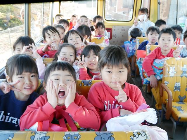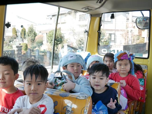 スイミングを終えて、幼稚園バスに乗って園に戻ります。