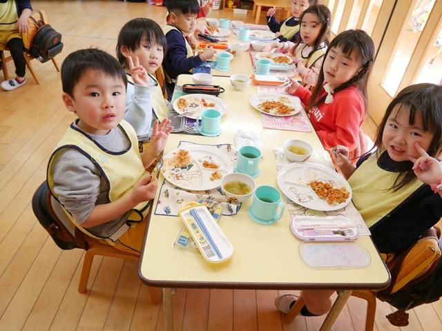 給食もモリモリ食べ。歯磨き・フッ素のうがいもします。