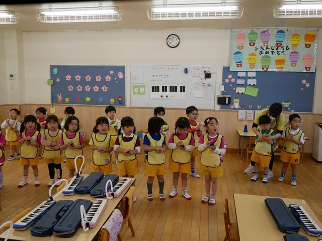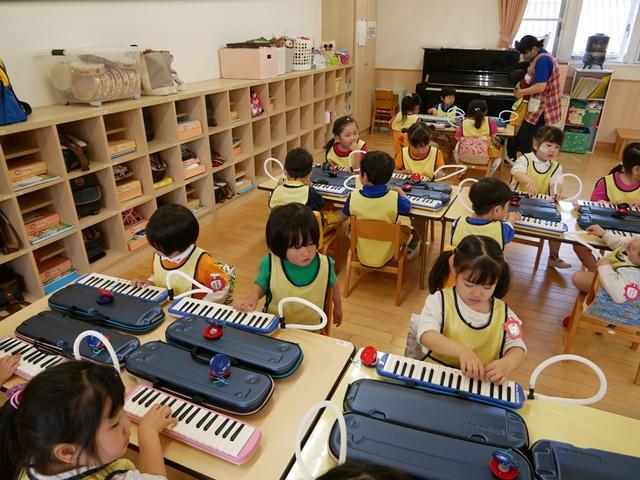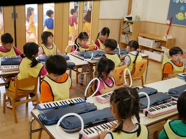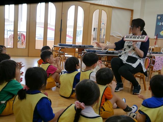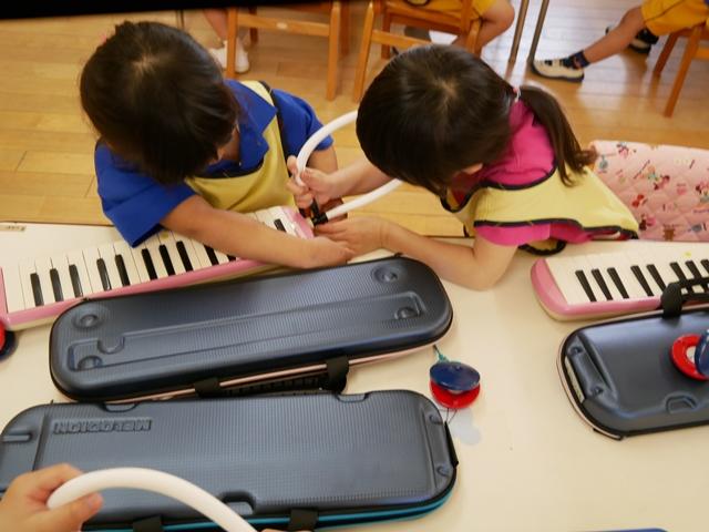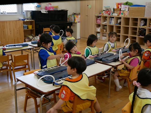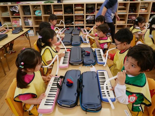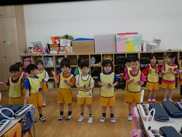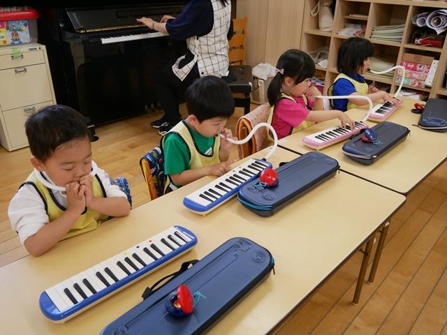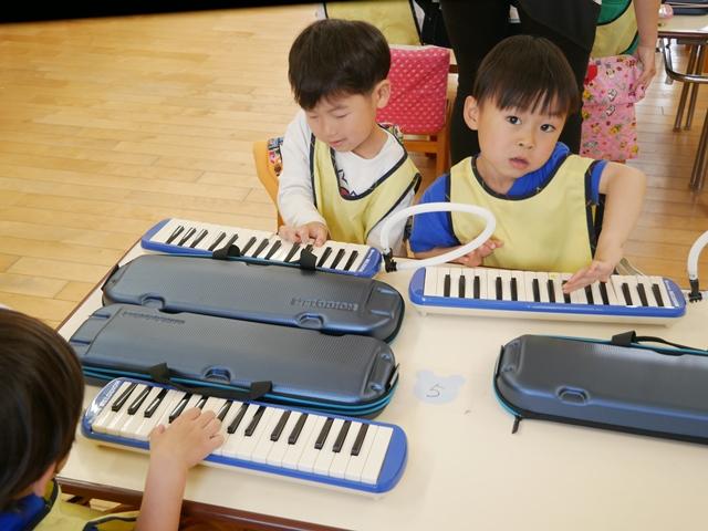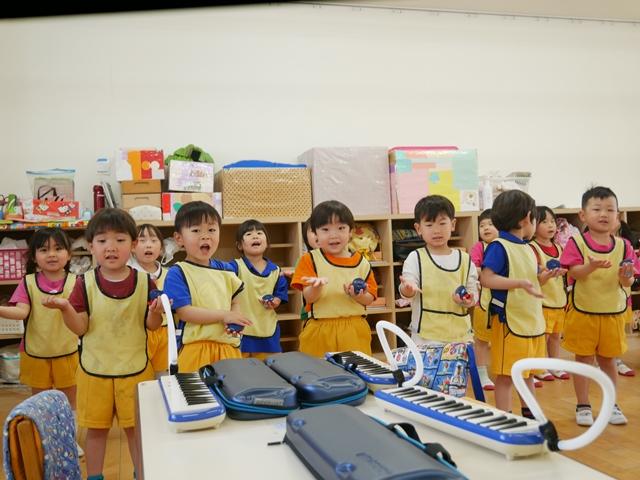 鍵盤ハーモニカでドレミを弾いたり、カスタネットやタンバリンをリズミカルにたたいてみたり、いっぱい楽しみました♪