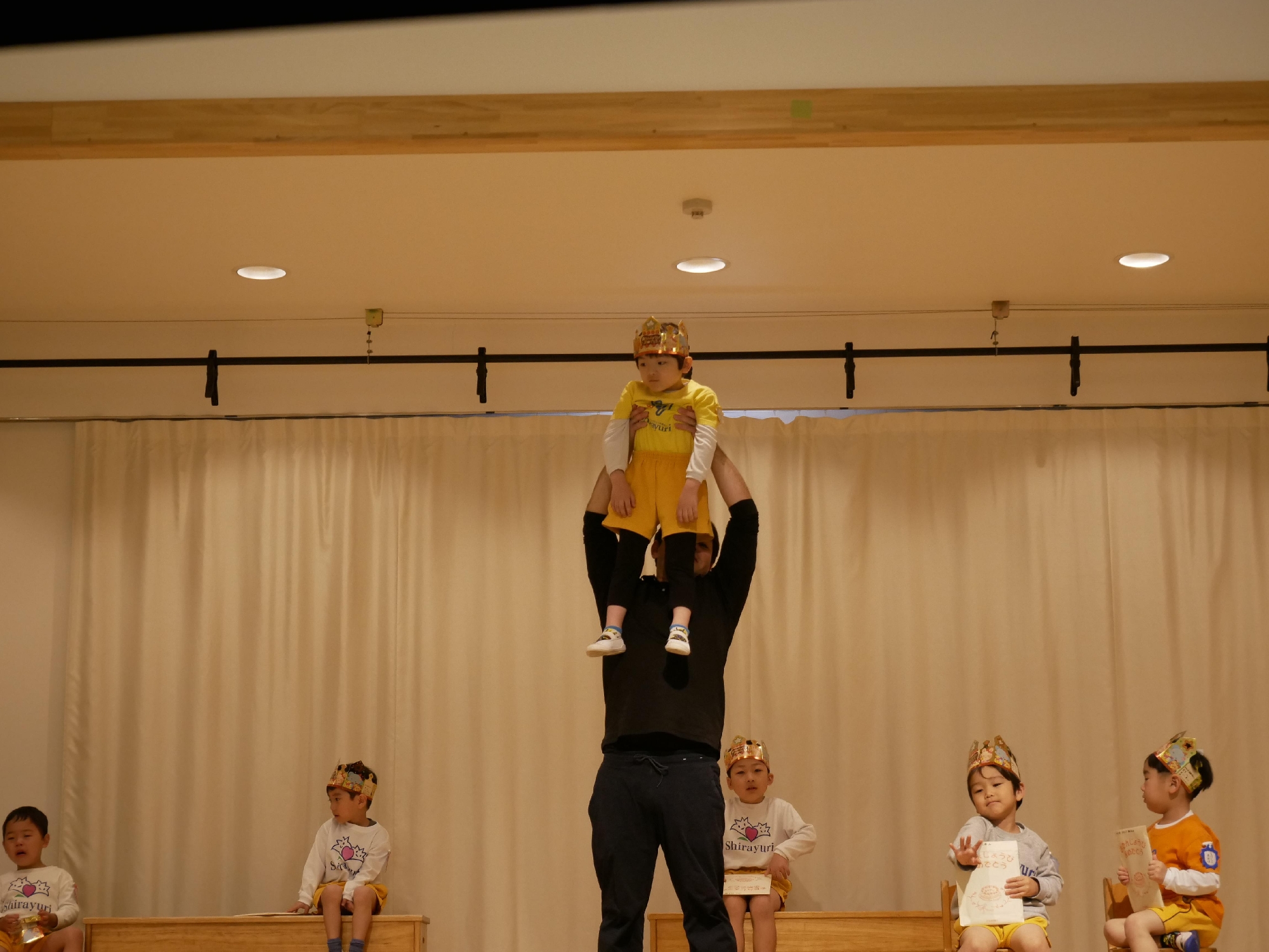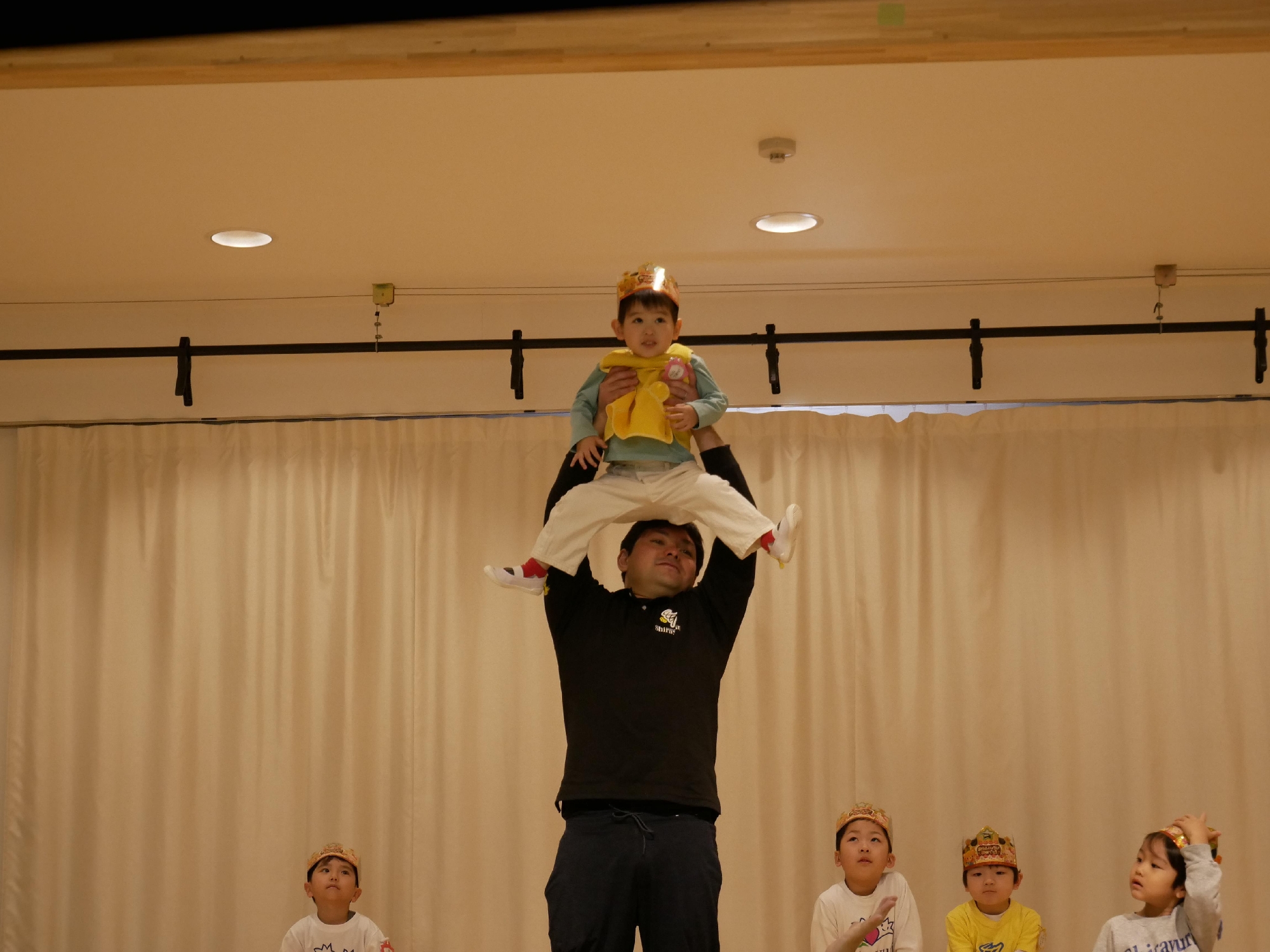 お誕生会では、吉羽先生から高い高いのプレゼント。園長先生から、誕生ブックのプレゼント♪