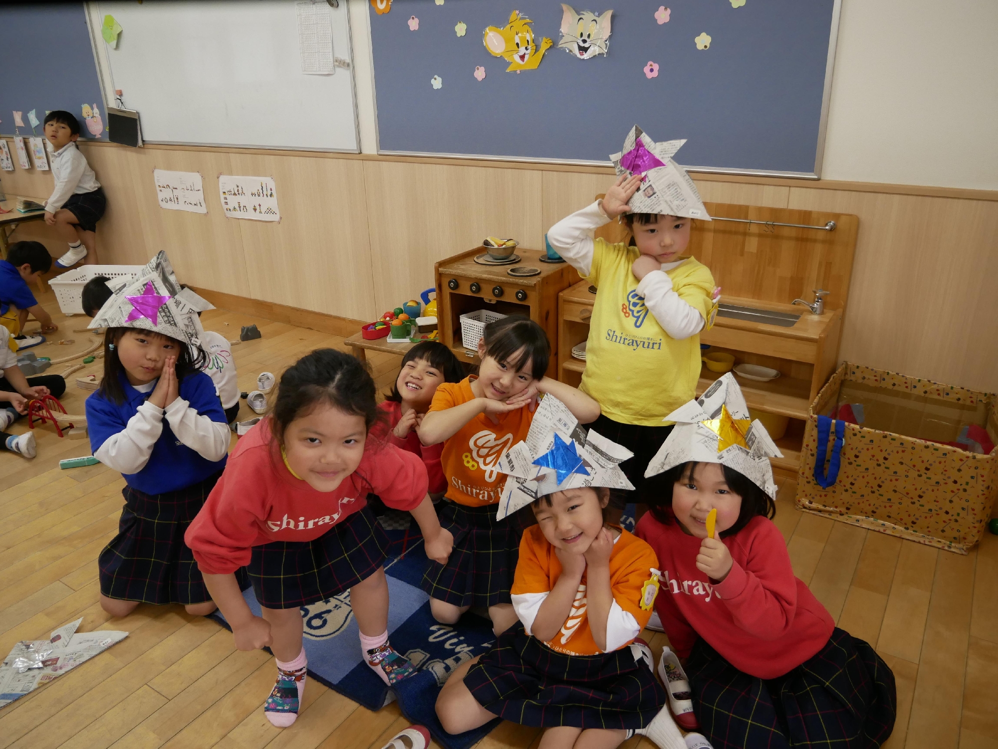 午後は、お絵描きをしたり、こどもの日製作でつくった兜をかぶったりお部屋で楽しく遊びました。