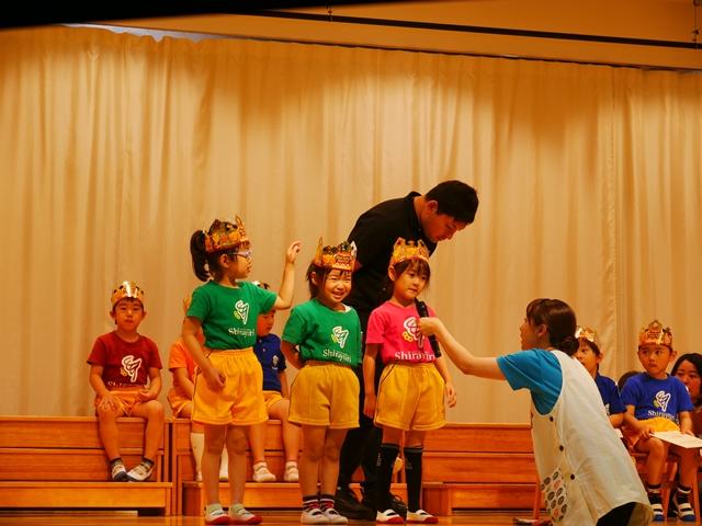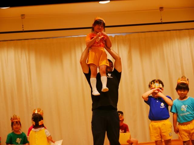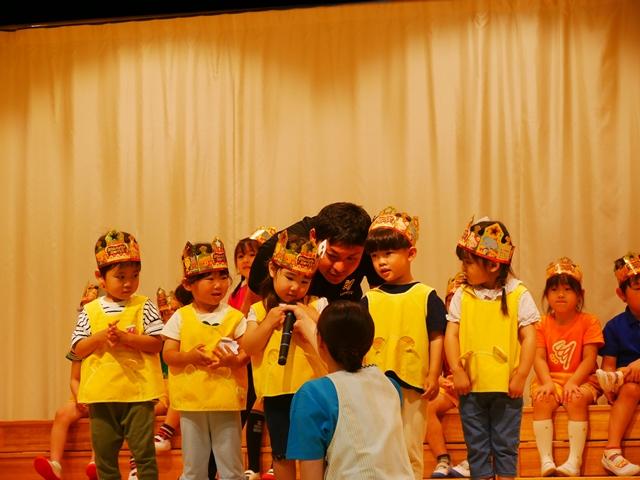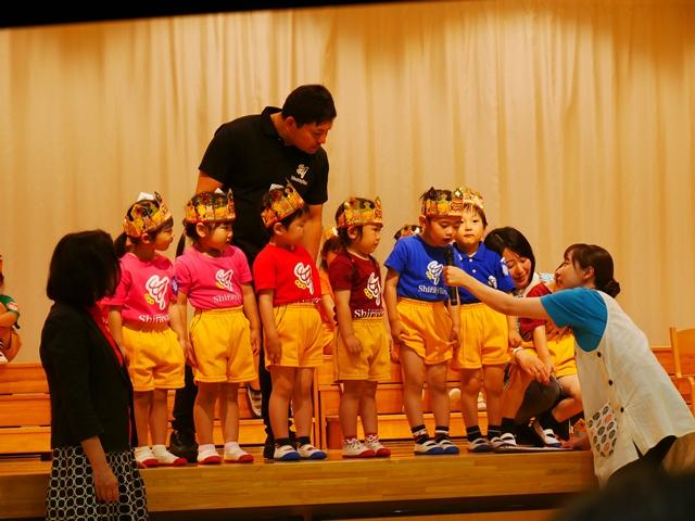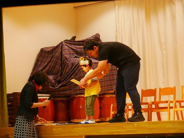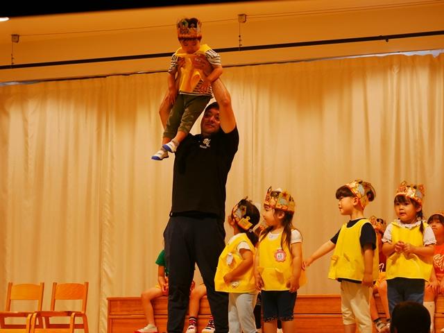 少し照れながらお名前を言ったあと、吉羽先生からの“たかいたかーい”をしてもらい、園長先生からプレゼントを貰いました♪