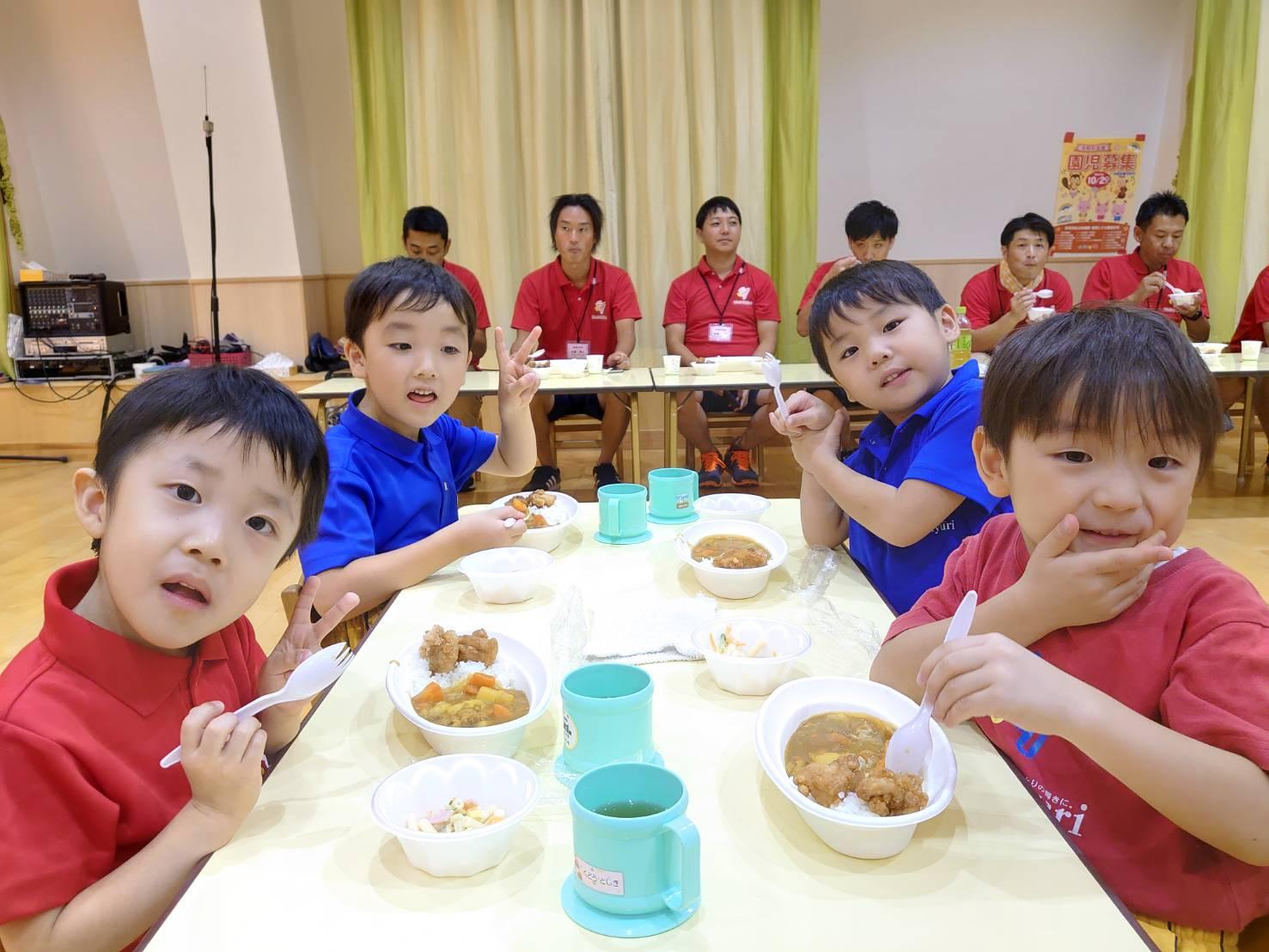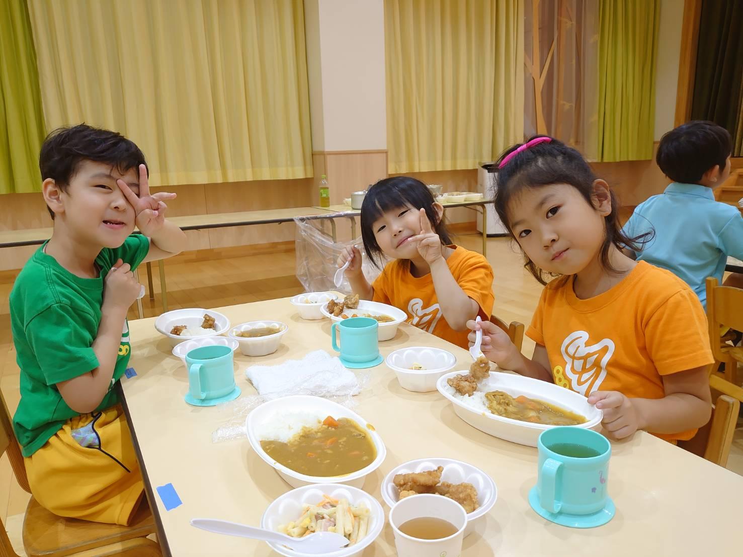 お夕食は、給食でも大人気メニューのカレーとから揚げです。